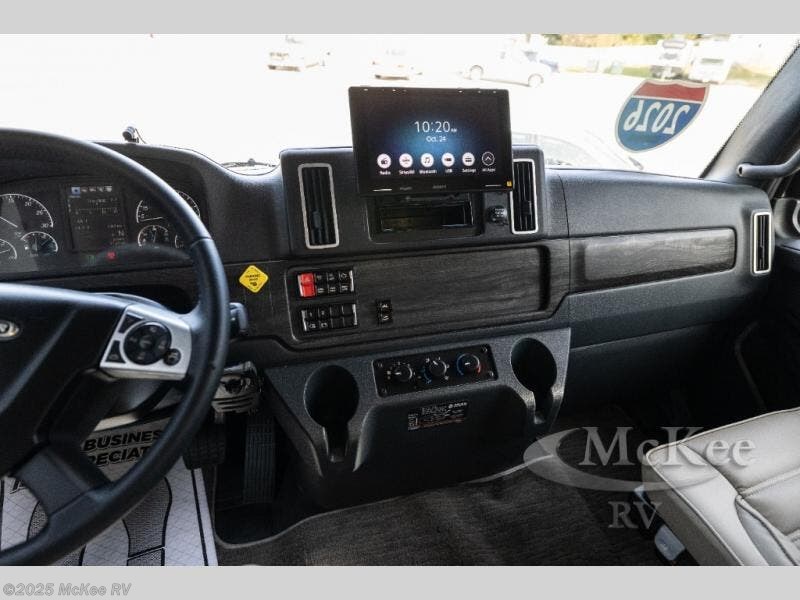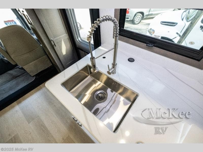 The Europa Super C diesel motorhome by Dynamax is coming to you with all the power, durability, and luxury you need for your adventurous lifestyle. You will love the solid surface countertop with LED edge lighting in the kitchen, the premium vinyl flooring throughout, and the clean, contemporary styling. The on-demand water heater is a luxury you won't want to travel without, and the multiplex wiring with a touch screen command center includes switch panels, and Bluetooth Smart Phone app control for ease of use. There are dual 12V 8D AGM deep-cycle maintenance-free house batteries and a single 200-watt solar panel to go off-grid if you choose, and the 12,000 lb. trailer hitch will allow you to bring along the off-road toys. Some of the exterior features that make this coach great are the armless patio awning with LED lighting, the automatic four-point hydraulic leveling jacks, and the eye-catching custom full-body paint package!