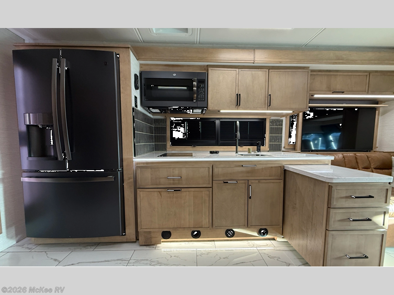 Bring the crew along in this coach and still feel like you’re in a luxury condo, not just a motorhome. Up front, the cab-over bunk, theater seats, love seat, and soft-touch dinette with lift-up storage will give everyone a place to relax while you enjoy the 50" LED smart TV with Sonos sound bar. The chef-friendly galley offers a 22-cu. ft. residential refrigerator with ice maker, induction range, convection microwave with air fryer, and a power countertop extension plus pantry. At the rear, a king bed suite with fireplace, 43" smart TV, wardrobe with digital safe, and a spacious bath featuring a 38" x 40" solid-surface shower with teak seat and deluxe multi-head system turns travel days into resort stays.
