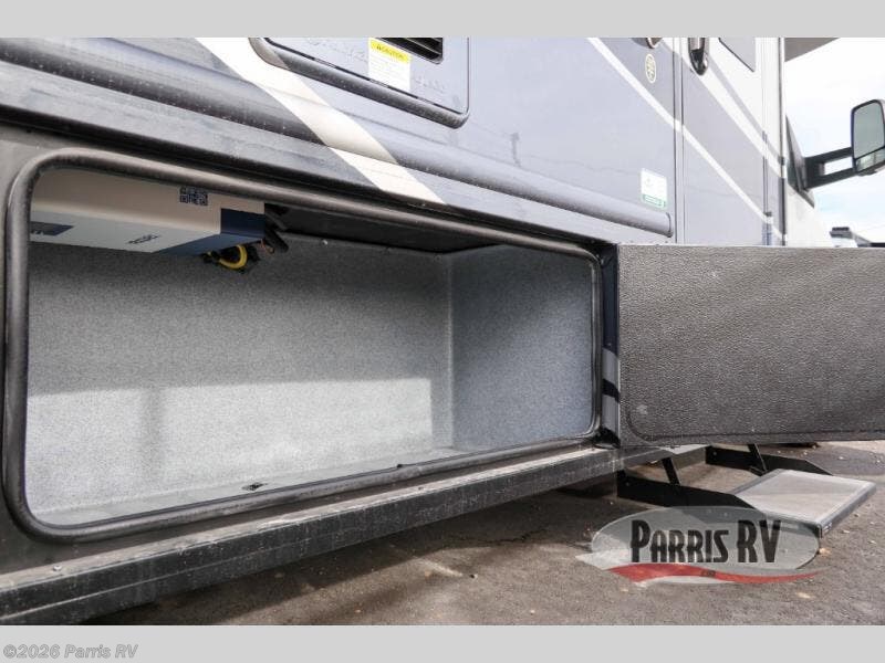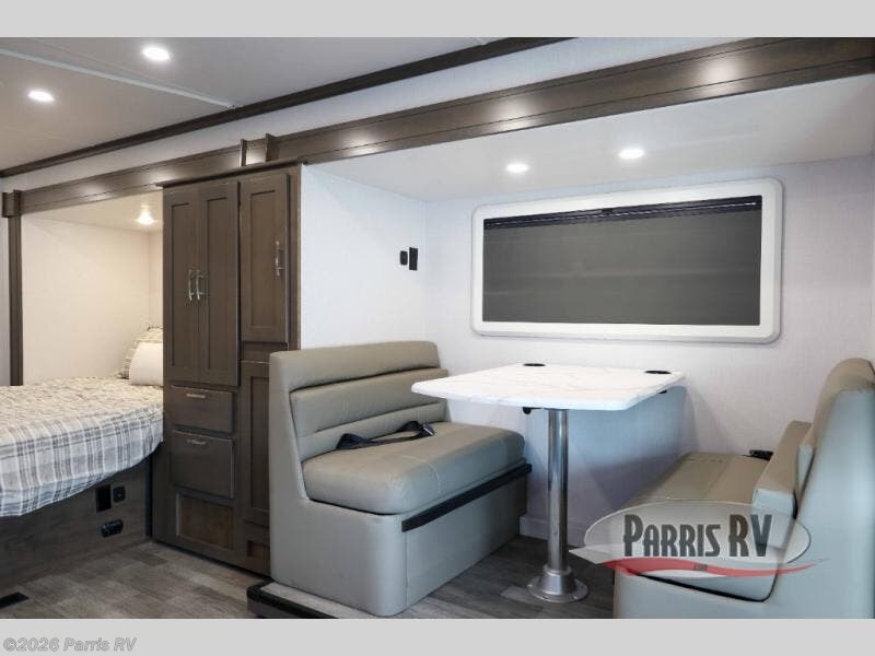 Take this motorhome on your greatest adventures yet! Start each morning feeling well rested after sleeping on the corner queen bed then head to the rear corner bathroom to freshen up in the shower with an Oxygenics body spa RV shower head and a skylight above for added headroom and natural lighting. Now that you're ready for the day, you can grab some eggs from the 8 cu. ft. two-door compressor-driven refrigerator and fry them up on the three burner cooktop, then enjoy them at the booth dinette. The kitchen also has a countertop extension for more meal prepping space and a convection microwave. This unit also includes a living room 32" LED Smart TV and a 32" LED smart TV across from the bed. You could even switch things up by replacing the booth dinette with an optional 3-seat power recliner, and adding a cab over bunk option!