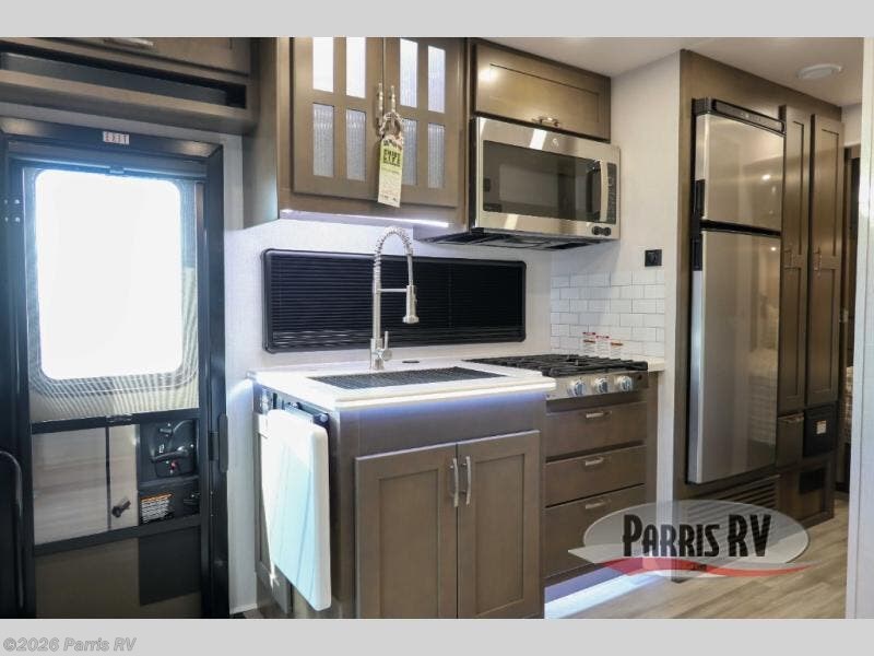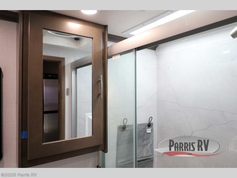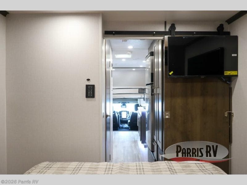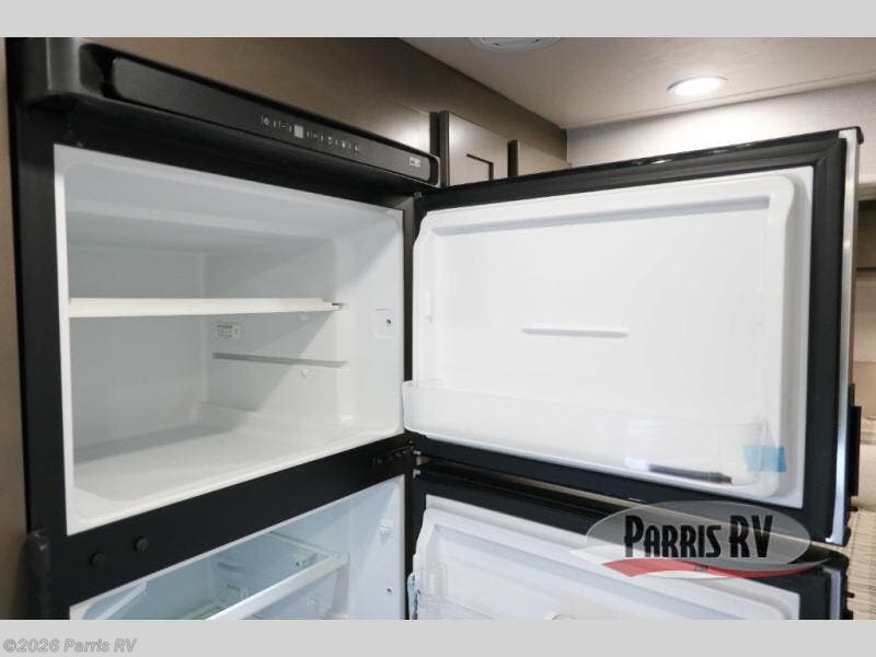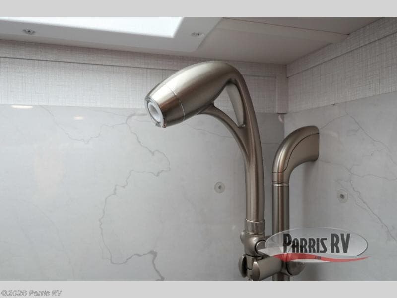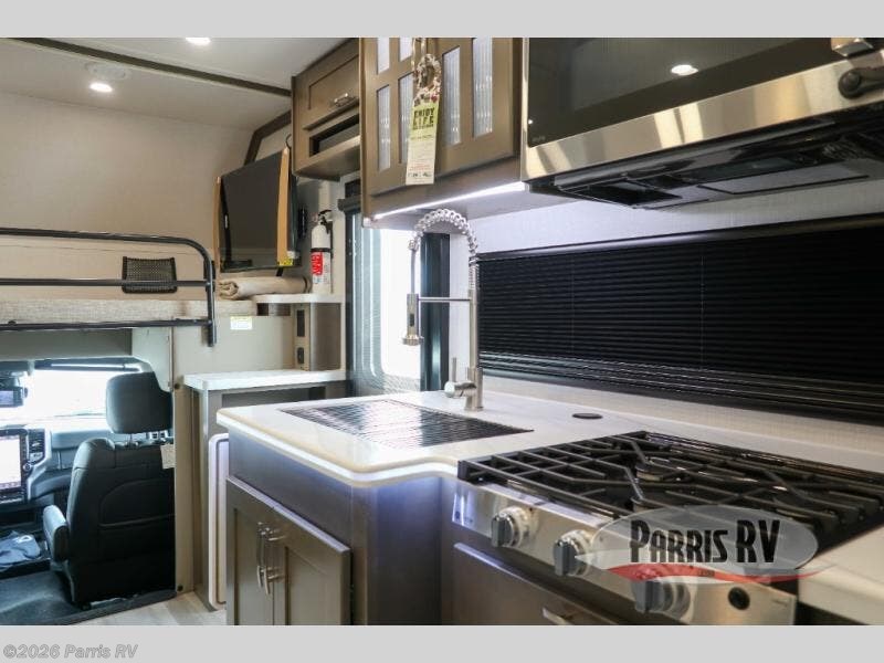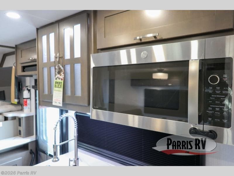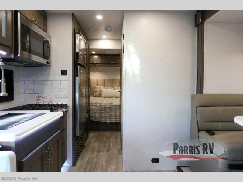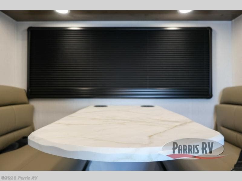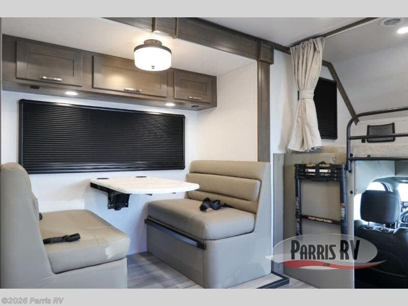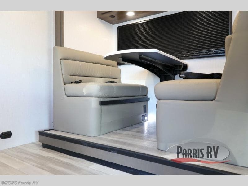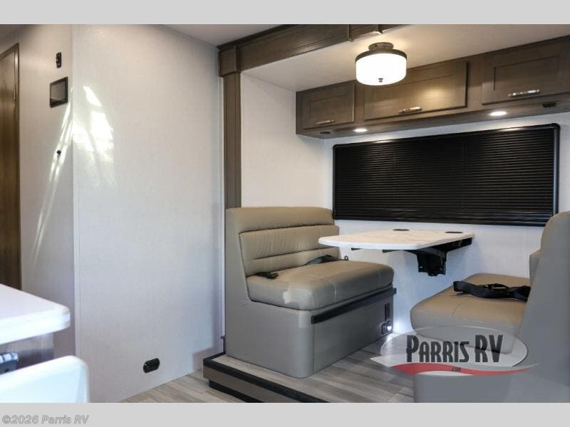 Pick a spot on the map and start traveling there in comfort with this motorhome! The rear private bedroom has a 60" x 75" gel-infused memory foam mattress for a good night's rest, LED reading lights, USB charging ports to charge your electronics while you recharge, and a 32" LED smart TV to watch movies in true comfort. The full bathroom has a designer shower with a skylight above for added head room and natural lighting and an Oxygenics body spa RV shower head for an even better showering experience on the road. The kitchen has everything you could need to prepare delicious home cooked meals including a countertop extension for more meal prepping space, and you can enjoy all of your meals at the booth dinette slide which can also transform into an extra sleeping space!
