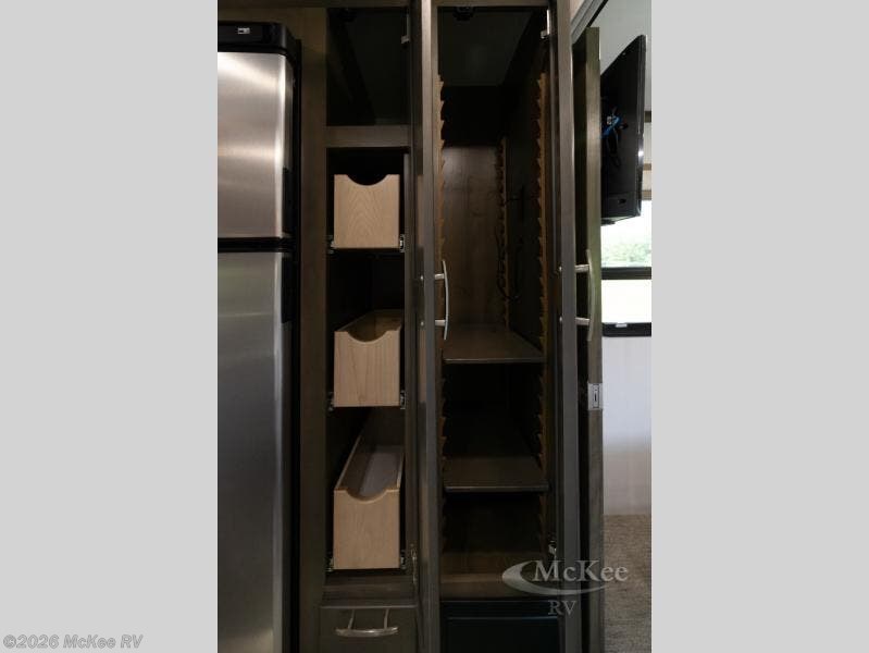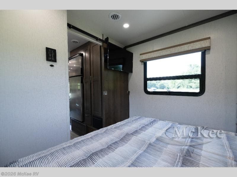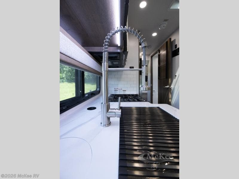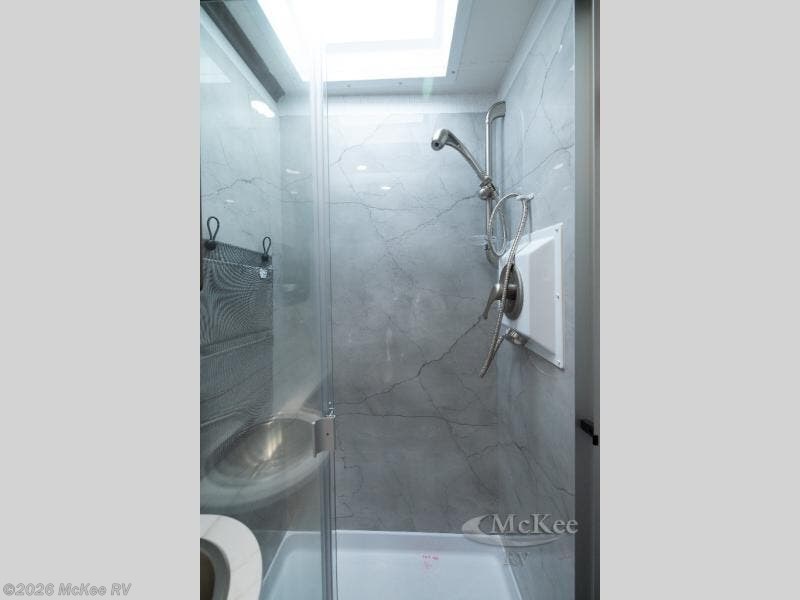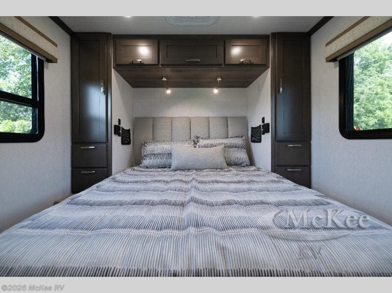 Pick a spot on the map and start traveling there in comfort with this motorhome! The rear private bedroom has a 60" x 75" gel-infused memory foam mattress for a good night's rest, LED reading lights, USB charging ports to charge your electronics while you recharge, and a 32" LED smart TV to watch movies in true comfort. The full bathroom has a designer shower with a skylight above for added head room and natural lighting and an Oxygenics body spa RV shower head for an even better showering experience on the road. The kitchen has everything you could need to prepare delicious home cooked meals including a countertop extension for more meal prepping space, and you can enjoy all of your meals at the booth dinette slide which can also transform into an extra sleeping space!