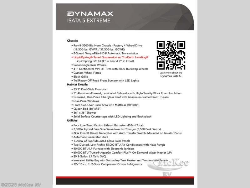 Request More Info on this 2026 Dynamax Corp isata 5 28SSD4X4EX Offered for sale by McKee RV