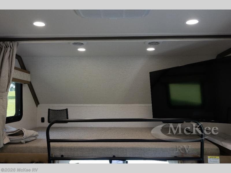 Pick a spot on the map and start traveling there in comfort with this motorhome! The rear private bedroom has a 60" x 75" gel-infused memory foam mattress for a good night's rest, LED reading lights, USB charging ports to charge your electronics while you recharge, and a 32" LED smart TV to watch movies in true comfort. The full bathroom has a designer shower with a skylight above for added head room and natural lighting and an Oxygenics body spa RV shower head for an even better showering experience on the road. The kitchen has everything you could need to prepare delicious home cooked meals including a countertop extension for more meal prepping space, and you can enjoy all of your meals at the booth dinette slide which can also transform into an extra sleeping space!