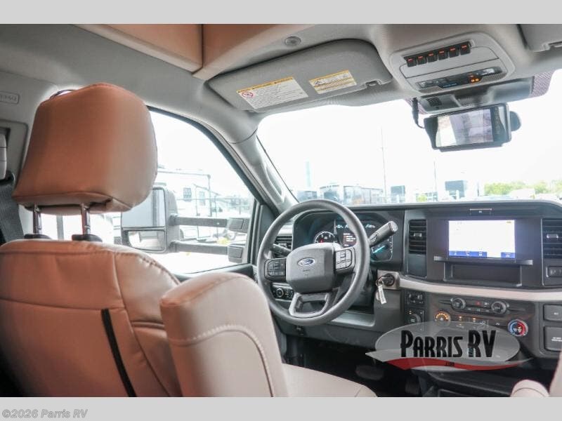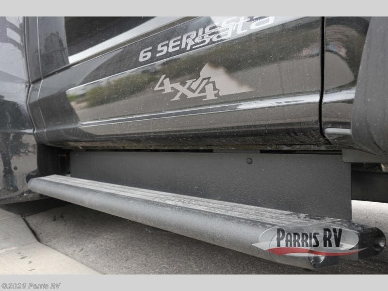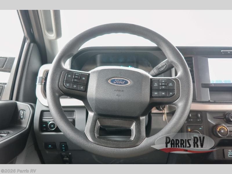 Get on the road again with the amazing Isata 6 Super C diesel motorhomes by Dynamax, built on the rugged Ford F600 XLT Chassis with factory 4-wheel drive. This powerhouse features a responsive TorqueShift 10-Speed Automatic Transmission and an advanced 8" touch screen dash radio with SYNC 4, offering seamless connectivity and entertainment on the go. The exterior boasts durable 2" aluminum-framed, laminated sidewalls with high-density block foam insulation, ensuring a comfortable and quiet ride. A keyless entry touch pad at the entry door provides secure and convenient entry. Inside, enjoy premium vinyl flooring throughout, perfect for withstanding the demands of travel. The interior design exudes warmth and sophistication, featuring exquisite hardwood shaker-style cabinetry and stunning solid surface countertops with LED edge lighting and a backsplash in the kitchen area.