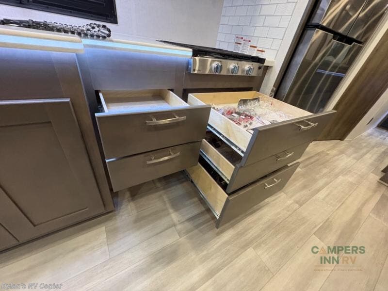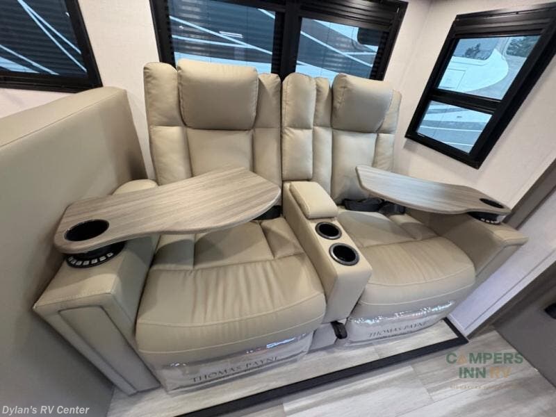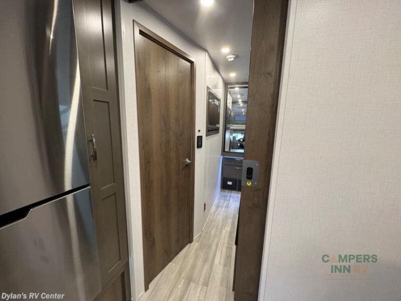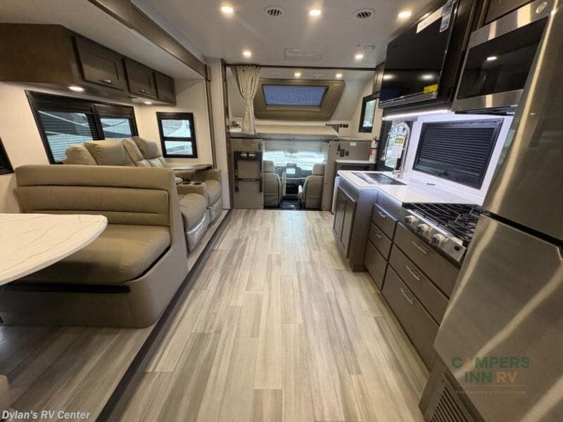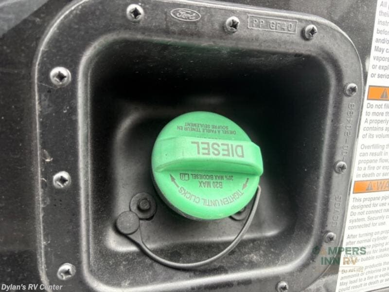 Get on the road again with the amazing Isata 6 Class C diesel motorhomes by Dynamax, built on the rugged Ford F600 XLT Chassis with factory 4-wheel drive. This powerhouse features a responsive TorqueShift 10-Speed Automatic Transmission and an advanced 8" touch screen dash radio with SYNC 4, offering seamless connectivity and entertainment on the go. The exterior boasts durable 2" aluminum-framed, laminated sidewalls with high-density block foam insulation, ensuring a comfortable and quiet ride. A keyless entry touch pad at the entry door provides secure and convenient entry. Inside, enjoy premium vinyl flooring throughout, perfect for withstanding the demands of travel. The interior design exudes warmth and sophistication, featuring exquisite hardwood shaker-style cabinetry and stunning solid surface countertops with LED edge lighting and a backsplash in the kitchen area.