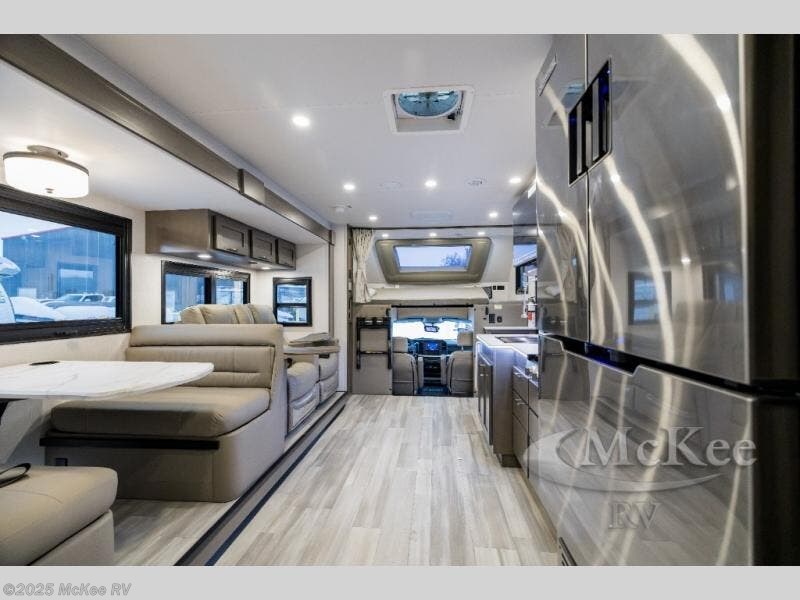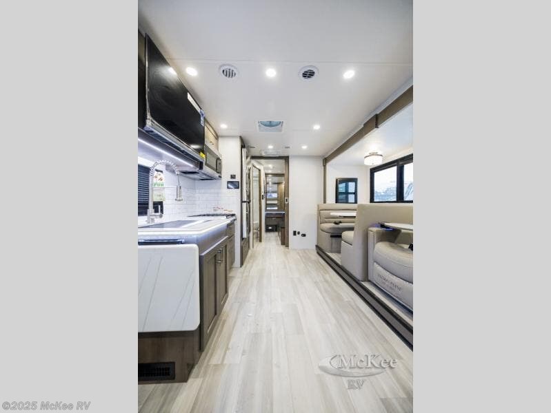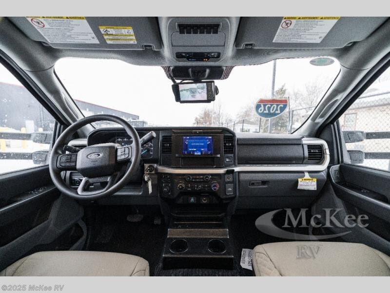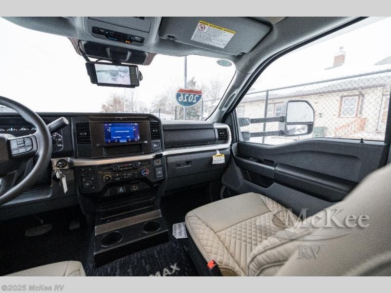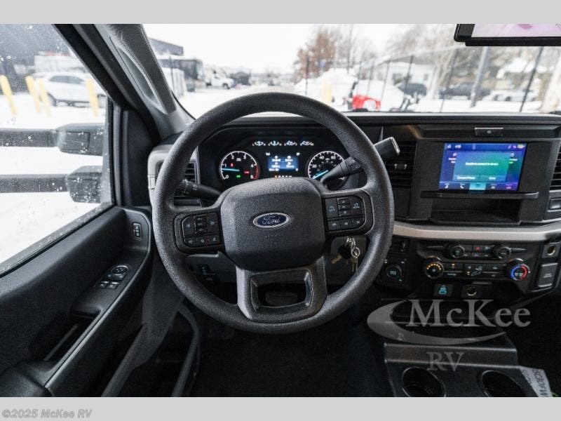Get on the road again with the amazing Isata 6 Class C diesel motorhomes by Dynamax, built on the rugged Ford F600 XLT Chassis with factory 4-wheel drive. This powerhouse features a responsive TorqueShift 10-Speed Automatic Transmission and an advanced 8" touch screen dash radio with SYNC 4, offering seamless connectivity and entertainment on the go. The exterior boasts durable 2" aluminum-framed, laminated sidewalls with high-density block foam insulation, ensuring a comfortable and quiet ride. A keyless entry touch pad at the entry door provides secure and convenient entry. Inside, enjoy premium vinyl flooring throughout, perfect for withstanding the demands of travel. The interior design exudes warmth and sophistication, featuring exquisite hardwood shaker-style cabinetry and stunning solid surface countertops with LED edge lighting and a backsplash in the kitchen area.