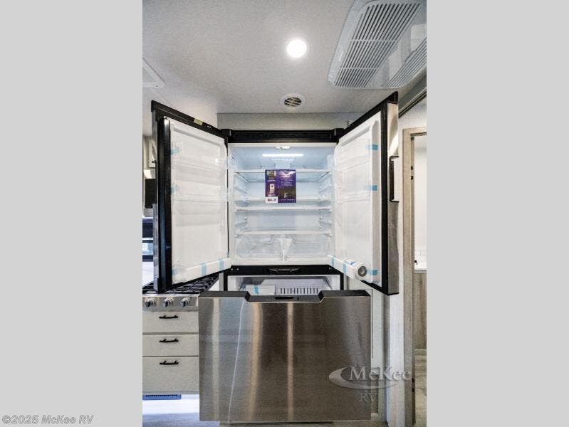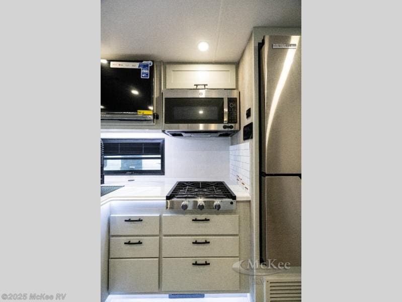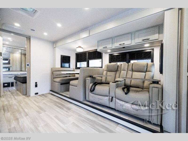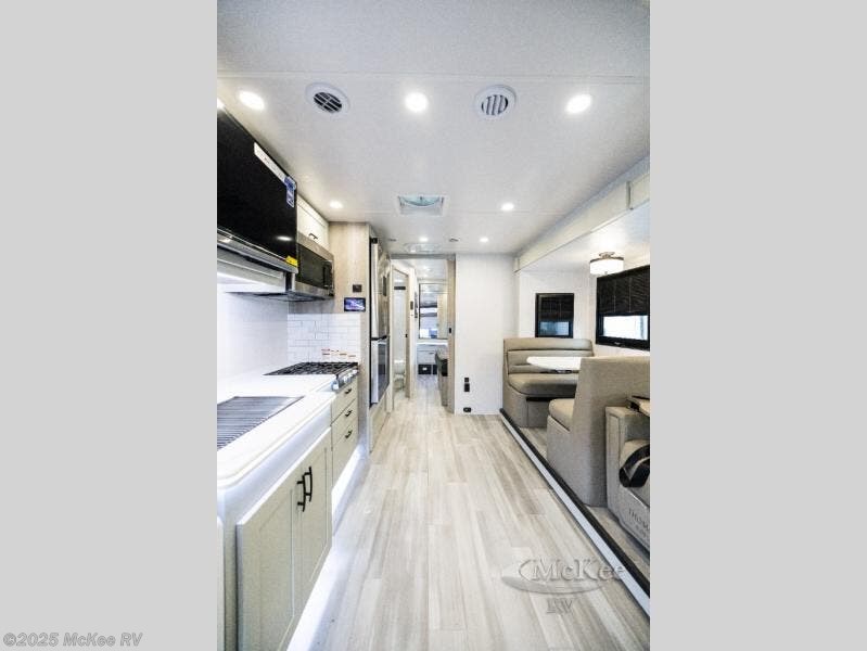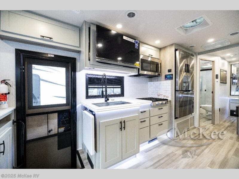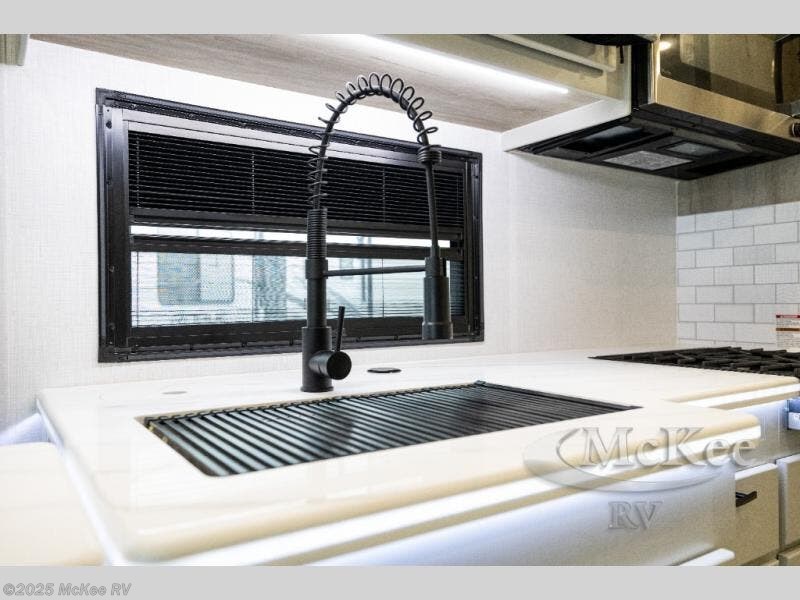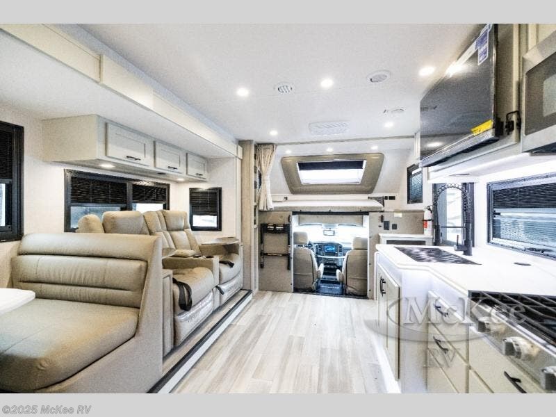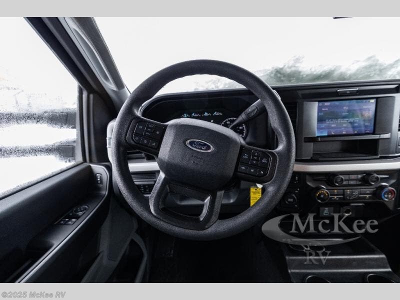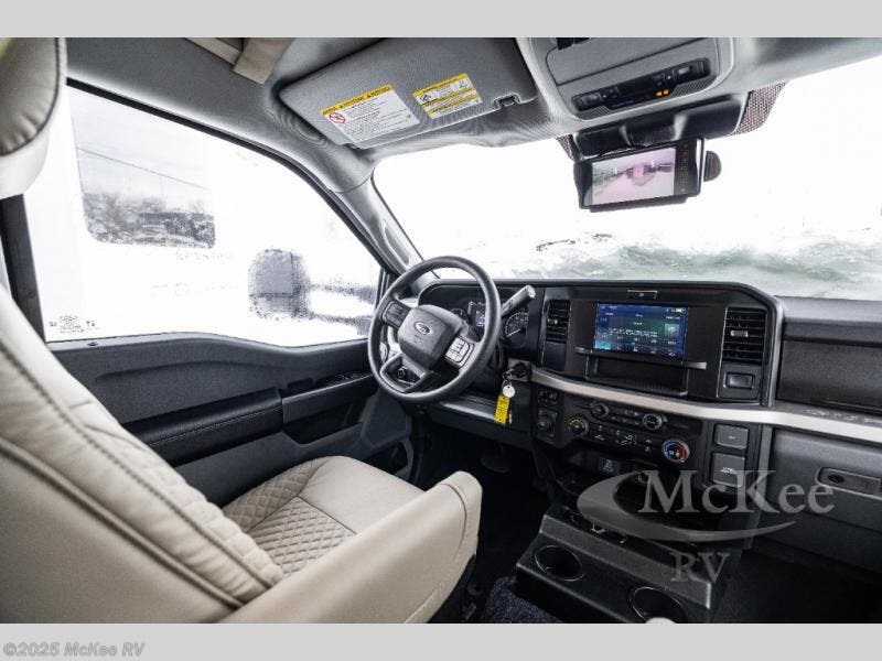 Get on the road again with the amazing Isata 6 Class C diesel motorhomes by Dynamax, built on the rugged Ford F600 XLT Chassis with factory 4-wheel drive. This powerhouse features a responsive TorqueShift 10-Speed Automatic Transmission and an advanced 8" touch screen dash radio with SYNC 4, offering seamless connectivity and entertainment on the go. The exterior boasts durable 2" aluminum-framed, laminated sidewalls with high-density block foam insulation, ensuring a comfortable and quiet ride. A keyless entry touch pad at the entry door provides secure and convenient entry. Inside, enjoy premium vinyl flooring throughout, perfect for withstanding the demands of travel. The interior design exudes warmth and sophistication, featuring exquisite hardwood shaker-style cabinetry and stunning solid surface countertops with LED edge lighting and a backsplash in the kitchen area.