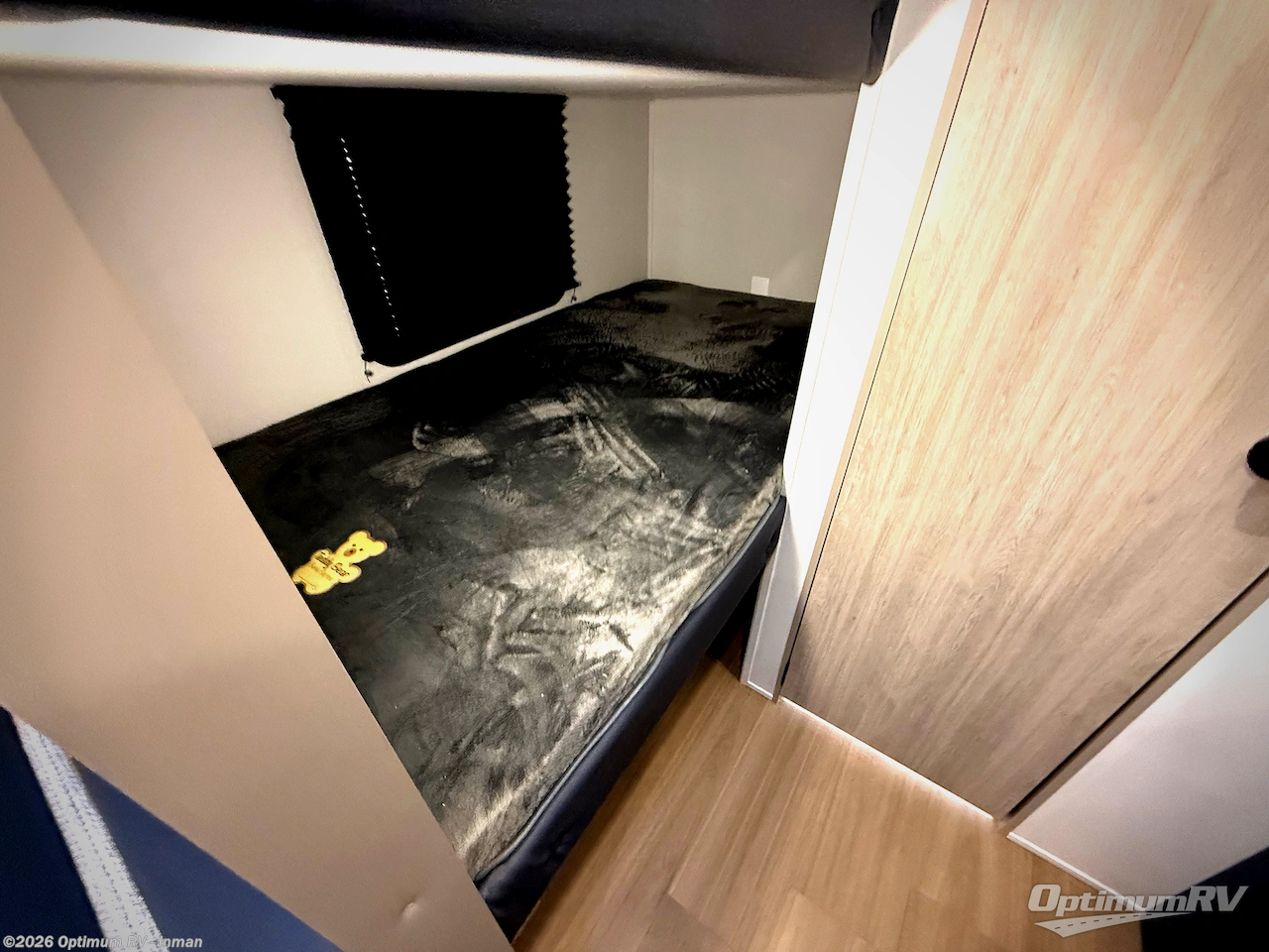 Gather around the booth dinette for meals, games, or planning your next adventure. The kitchen’s got the essentials: a refrigerator to keep snacks chilled, a two-burner cooktop for whipping up meals, and overhead cabinets for tidy storage. Plus, the jackknife sofa is perfect for lounging, movie nights, or just chillin’ with the crew. Bunk beds are perfect for the little adventurers, while the cozy front bedroom features a spacious king bed, ample wardrobes to stash gear, and handy nightstands for those midnight reads. The full bathroom is your private oasis where you can start and end each day feeling fresh and ready for more fun!