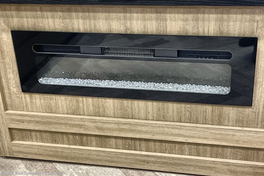Each East to West Blackthorn Model is thoughtfully designed with both comfort and style in mind. The climate package features include an electric fireplace for cozy evenings, a high-capacity 35,000 BTU furnace, and a heated, enclosed underbelly with circulating heat to the dump valves for added protection and functionality. The Interior Luxury Package enhances the living space with solid surface kitchen countertops, Slow Rise roller shades for a sleek look and light control, and built-in CPAP shelves in the bed base for added convenience. On the outside, the Exterior Package delivers practical upgrades like solid entry steps with an extended grab handle, an oversized wide entrance door for easier access, and dual power awnings with LED lighting, perfect for enjoying your outdoor space day or night.