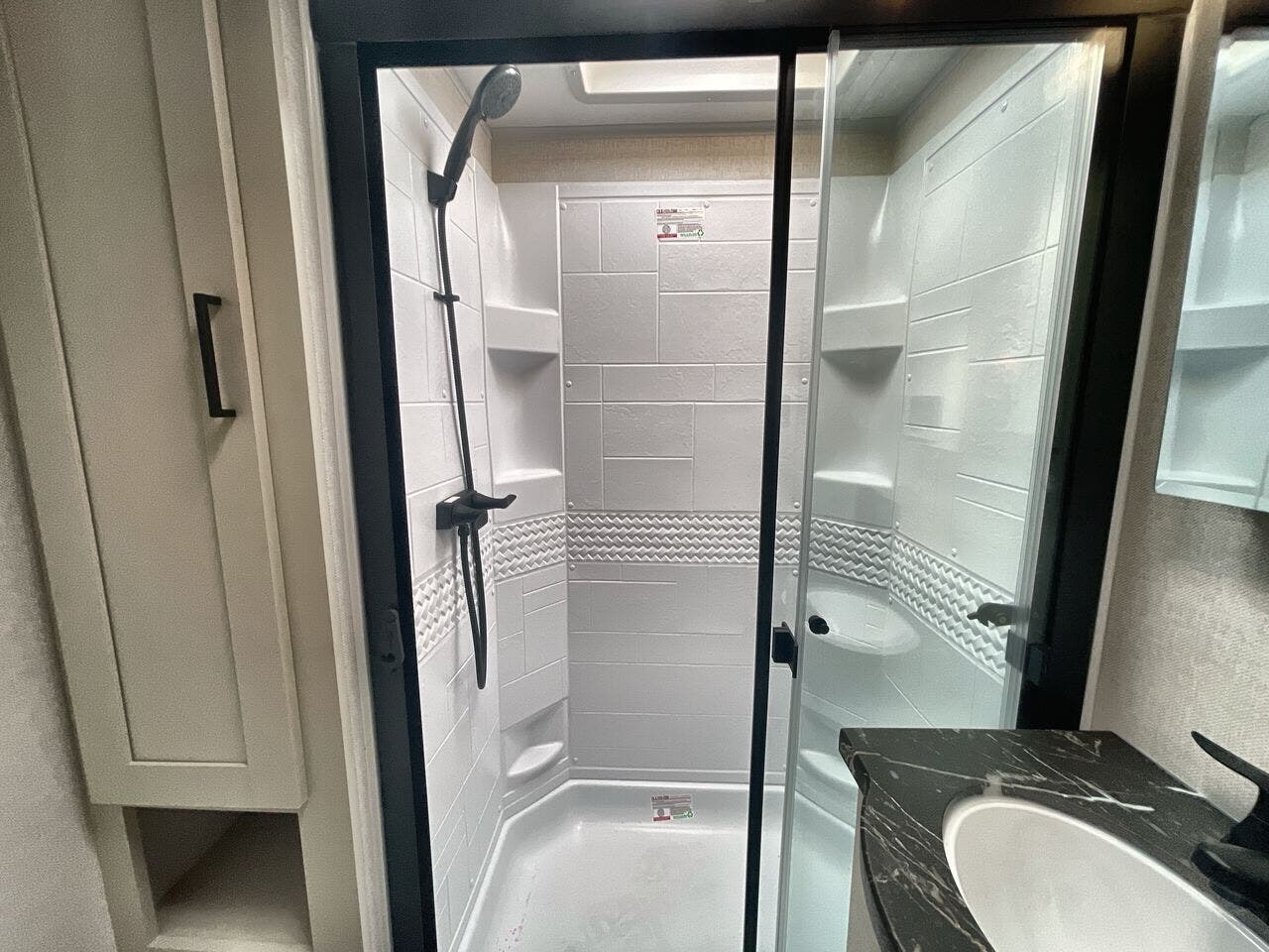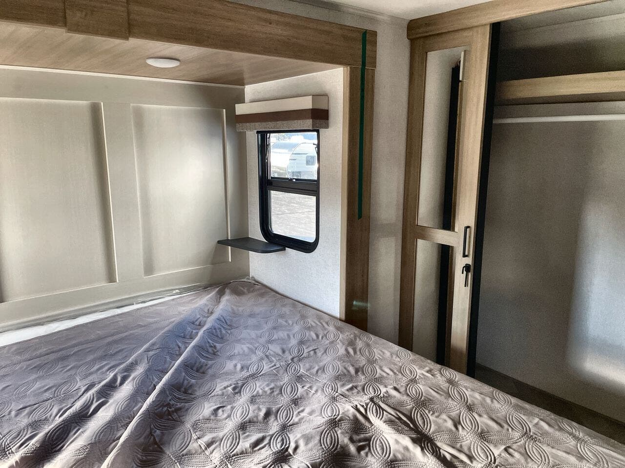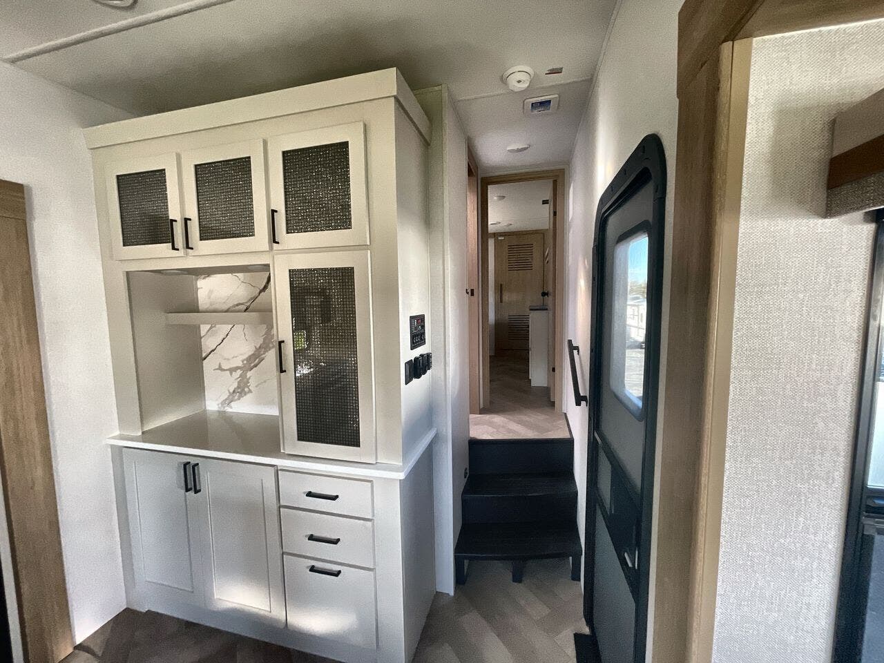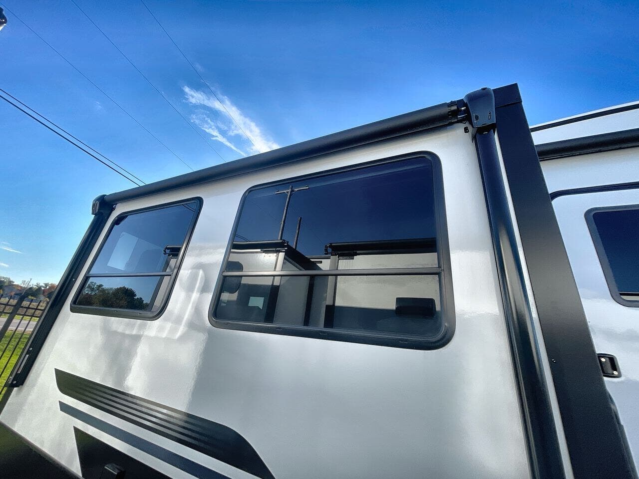 Each East to West Blackthorn Model is thoughtfully designed with both comfort and style in mind. The climate package features include an electric fireplace for cozy evenings, a high-capacity 35,000 BTU furnace, and a heated, enclosed underbelly with circulating heat to the dump valves for added protection and functionality. The Interior Luxury Package enhances the living space with solid surface kitchen countertops, Slow Rise roller shades for a sleek look and light control, and built-in CPAP shelves in the bed base for added convenience. On the outside, the Exterior Package delivers practical upgrades like solid entry steps with an extended grab handle, an oversized wide entrance door for easier access, and dual power awnings with LED lighting, perfect for enjoying your outdoor space day or night.