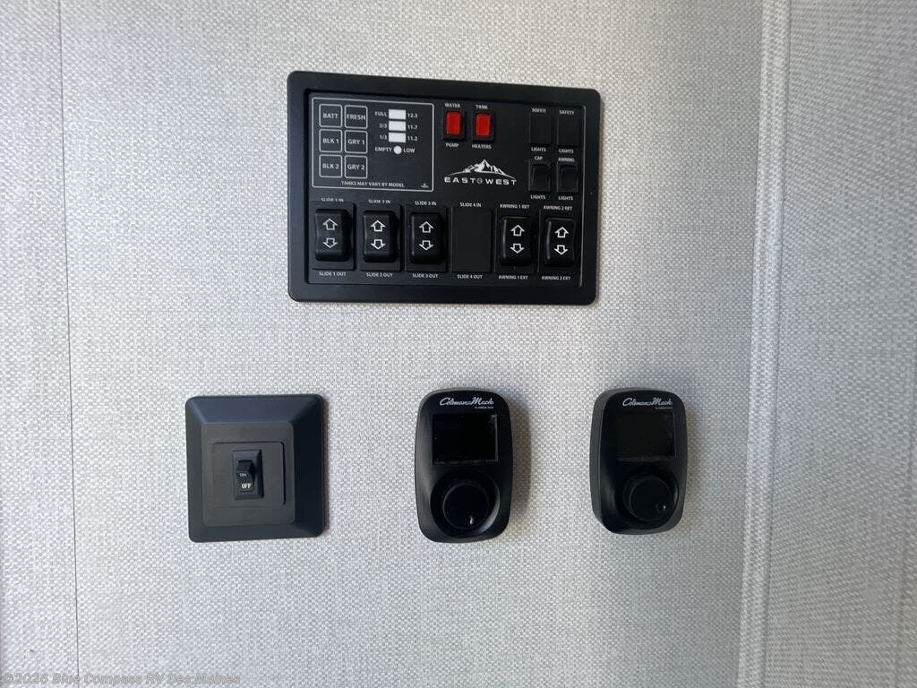 Each East to West Blackthorn Model is thoughtfully designed with both comfort and style in mind. The climate package features include an electric fireplace for cozy evenings, a high-capacity 35,000 BTU furnace, and a heated, enclosed underbelly with circulating heat to the dump valves for added protection and functionality. The Interior Luxury Package enhances the living space with solid surface kitchen countertops, Slow Rise roller shades for a sleek look and light control, and built-in CPAP shelves in the bed base for added convenience. On the outside, the Exterior Package delivers practical upgrades like solid entry steps with an extended grab handle, an oversized wide entrance door for easier access, and dual power awnings with LED lighting, perfect for enjoying your outdoor space day or night.