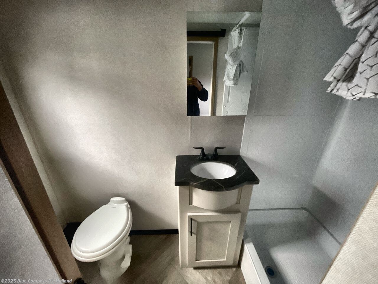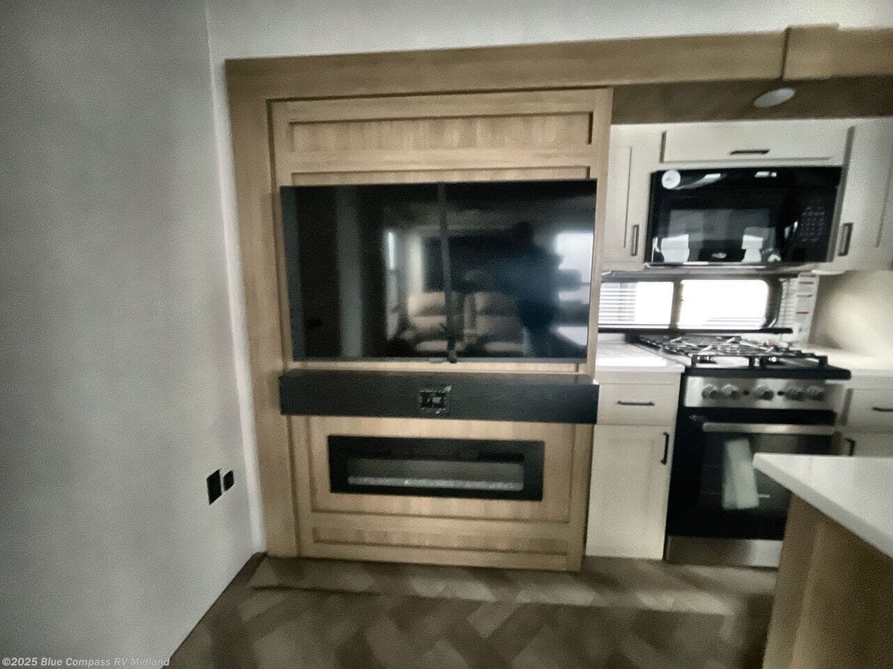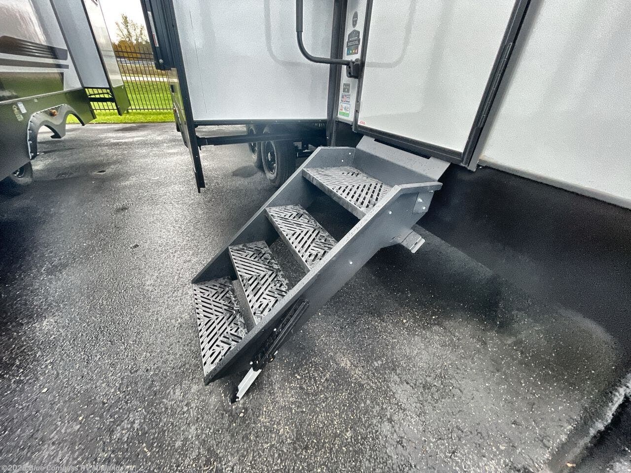 Each East to West Blackthorn Model is thoughtfully designed with both comfort and style in mind. The climate package features include an electric fireplace for cozy evenings, a high-capacity 35,000 BTU furnace, and a heated, enclosed underbelly with circulating heat to the dump valves for added protection and functionality. The Interior Luxury Package enhances the living space with solid surface kitchen countertops, Slow Rise roller shades for a sleek look and light control, and built-in CPAP shelves in the bed base for added convenience. On the outside, the Exterior Package delivers practical upgrades like solid entry steps with an extended grab handle, an oversized wide entrance door for easier access, and dual power awnings with LED lighting, perfect for enjoying your outdoor space day or night.