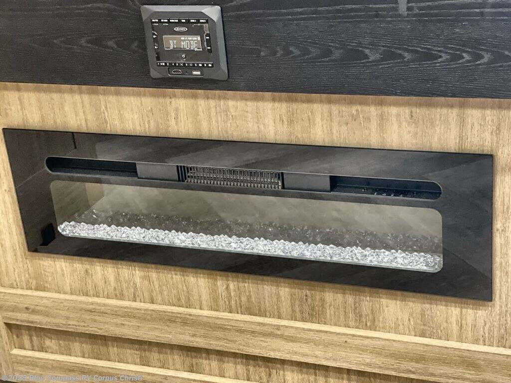 Each East to West Blackthorn Model is thoughtfully designed with both comfort and style in mind. The cliamte package features include an electric fireplace for cozy evenings, a high-capacity 35,000 BTU furnace, and a heated, enclosed underbelly with circulating heat to the dump valves for added protection and functionality. The Interior Luxury Package enhances the living space with solid surface kitchen countertops, Slow Rise roller shades for a sleek look and light control, and built-in CPAP shelves in the bed base for added convenience. On the outside, the Exterior Package delivers practical upgrades like solid entry steps with an extended grab handle, an oversized wide entrance door for easier access, and dual power awnings with LED lighting, perfect for enjoying your outdoor space day or night.