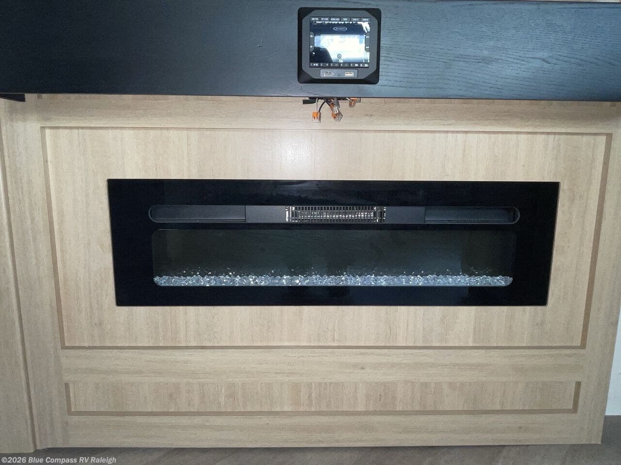 Each East to West Blackthorn Model is thoughtfully designed with both comfort and style in mind. The cliamte package features include an electric fireplace for cozy evenings, a high-capacity 35,000 BTU furnace, and a heated, enclosed underbelly with circulating heat to the dump valves for added protection and functionality. The Interior Luxury Package enhances the living space with solid surface kitchen countertops, Slow Rise roller shades for a sleek look and light control, and built-in CPAP shelves in the bed base for added convenience. On the outside, the Exterior Package delivers practical upgrades like solid entry steps with an extended grab handle, an oversized wide entrance door for easier access, and dual power awnings with LED lighting, perfect for enjoying your outdoor space day or night.