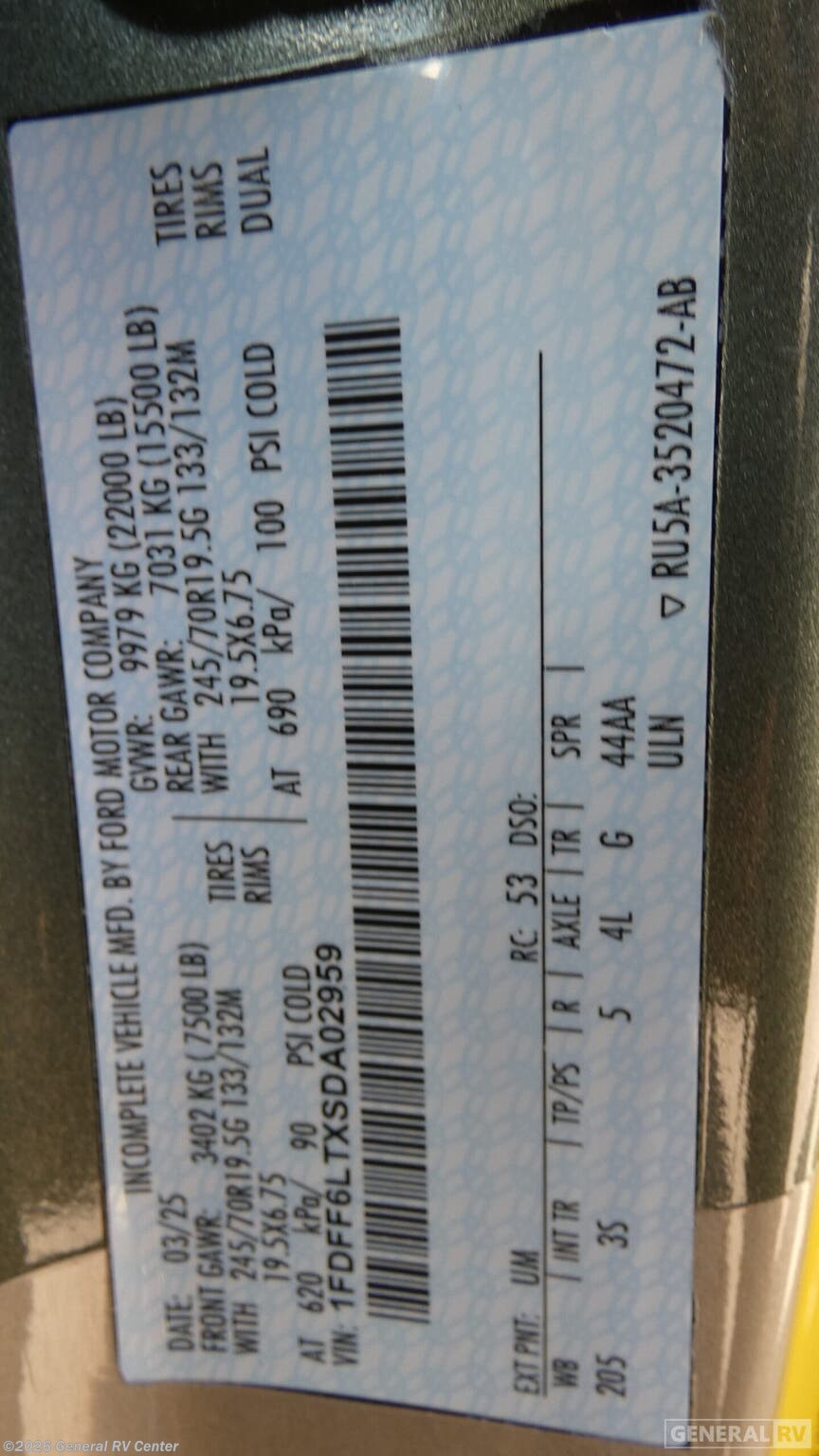 - VIN1FDFF6LTXSDA02959