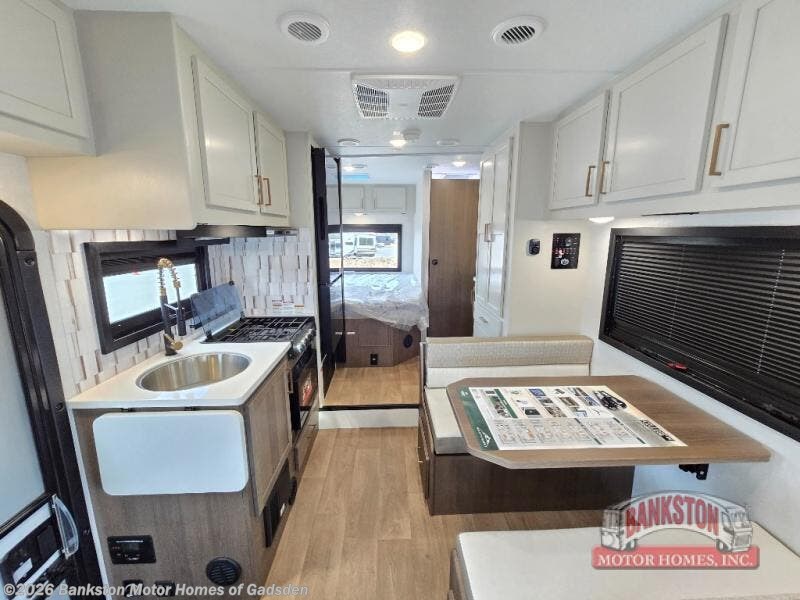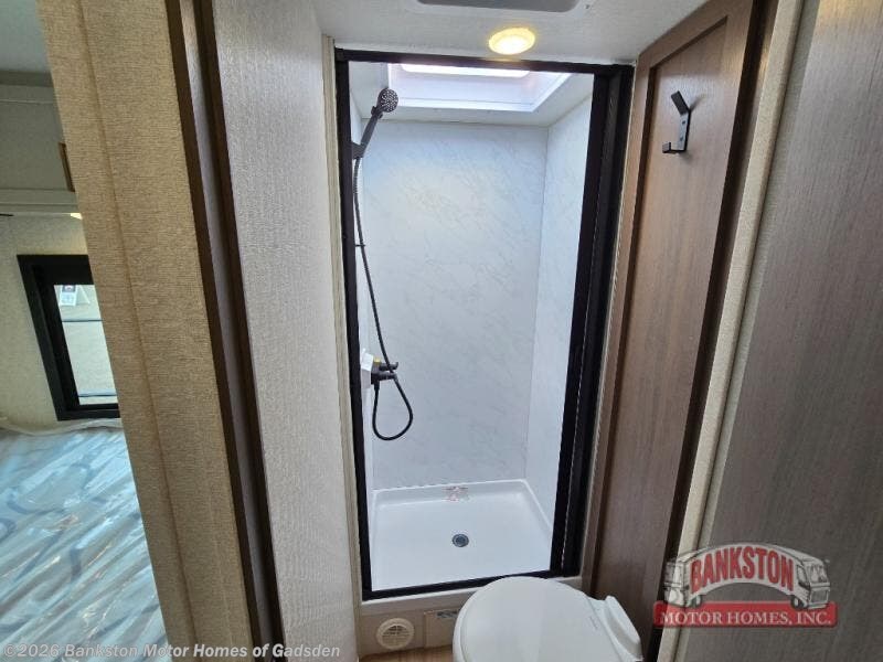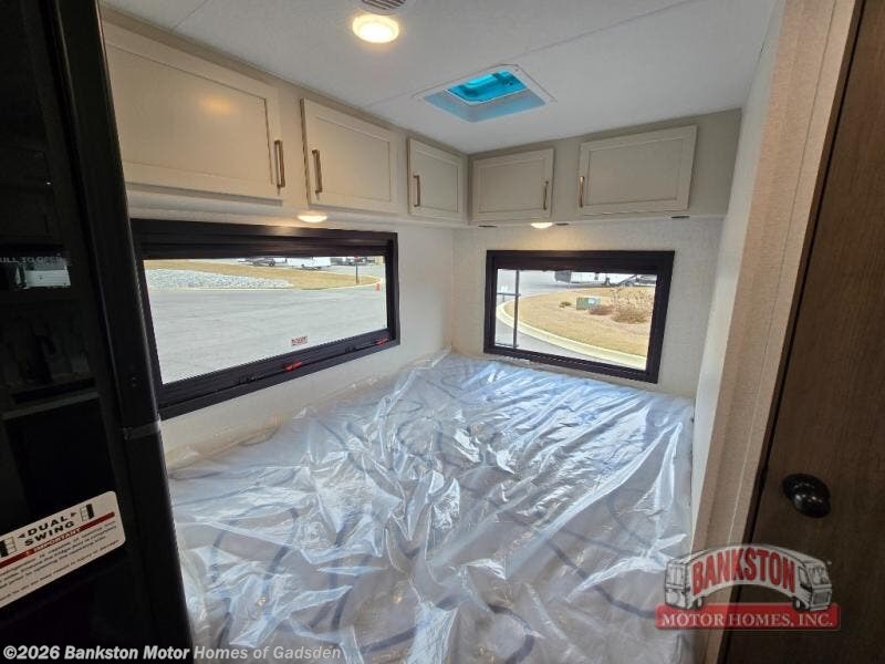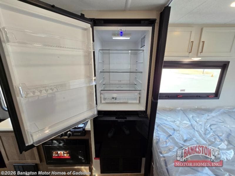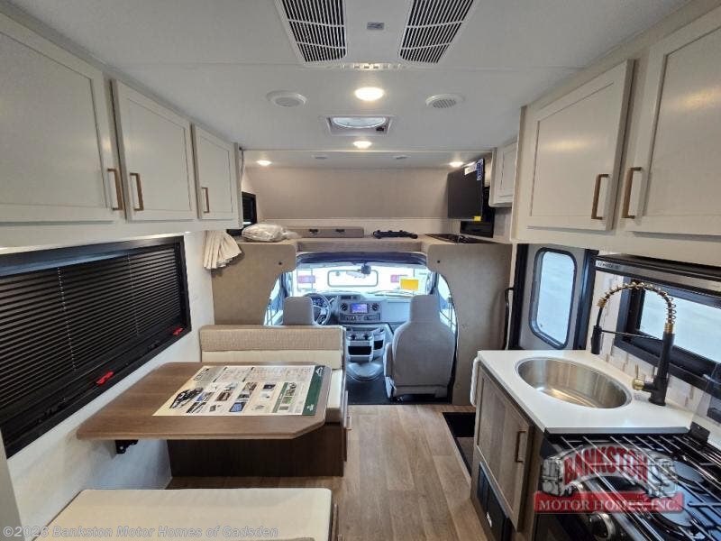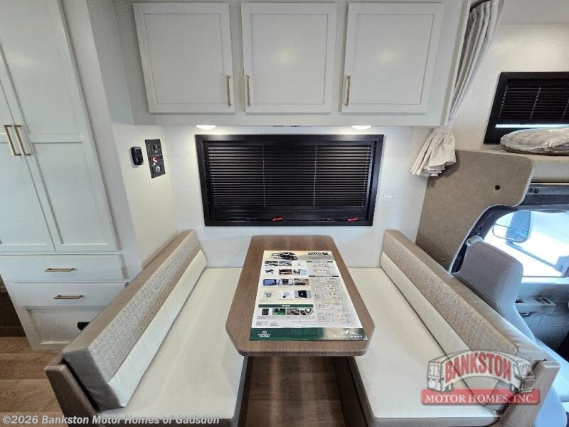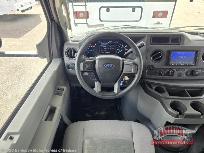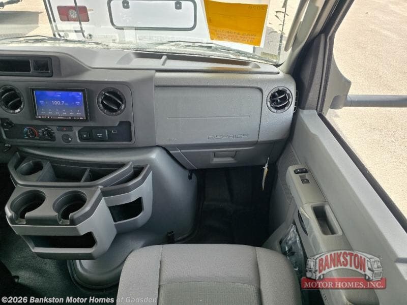The College Avenue Class C gas motorhome is built on the dependable Ford E-450 chassis, delivering confident towing capability and reliable performance for the road ahead. Durable Azdel composite exterior sidewalls pair with a one-piece painted fiberglass front cap and a protective roof design to create a coach made for long-term adventure, while Arctic Package tank heaters and solar prep support extended-season and off-grid travel. Inside, the living space is thoughtfully designed with quality finishes, smart storage, and frameless dual-paned windows with integrated day and night shades that enhance comfort in any climate. Exterior conveniences like a power awning with LED lighting and rear and side-view cameras add everyday usability, making the College Avenue ready for travel today and customization tomorrow.