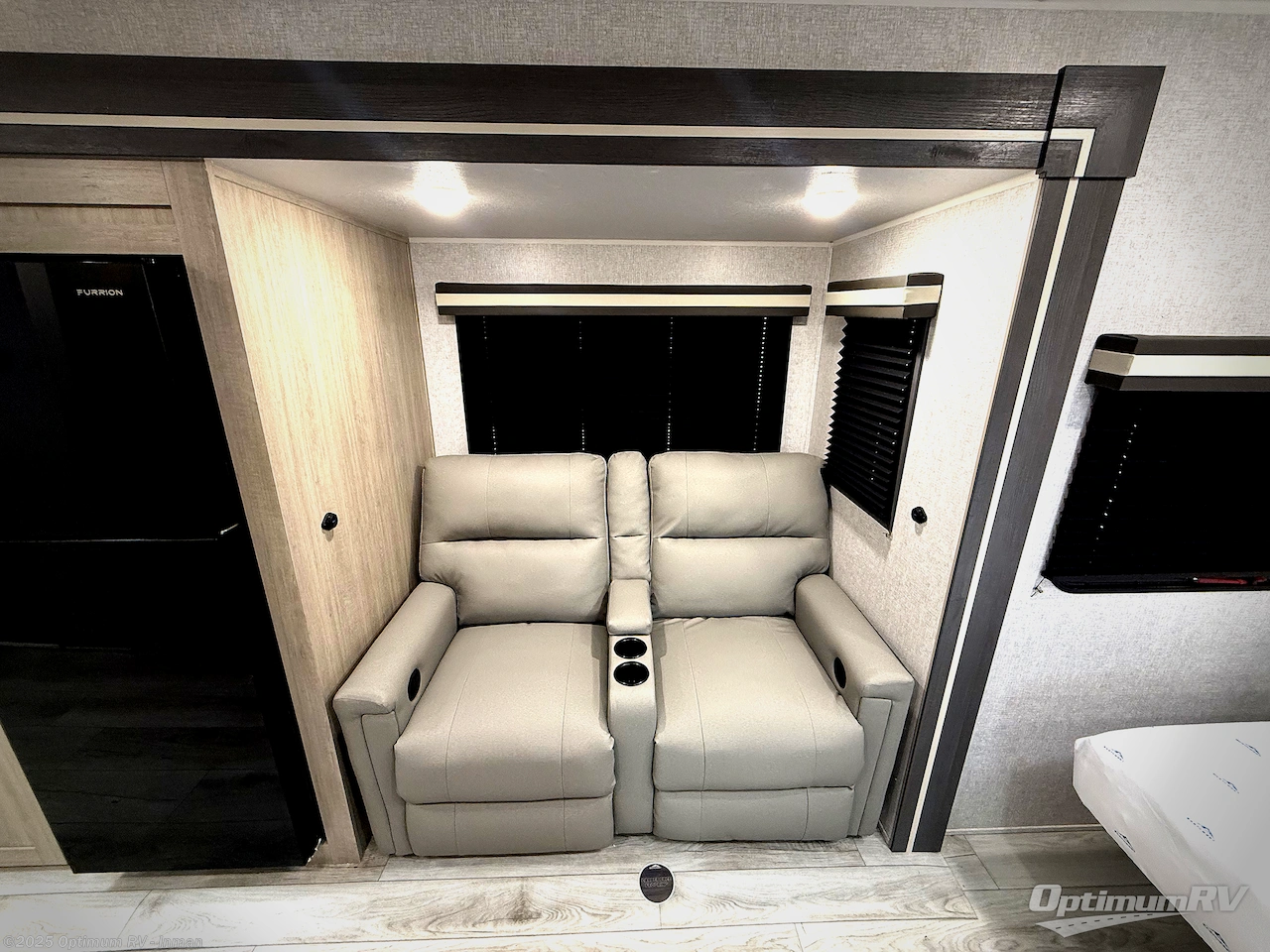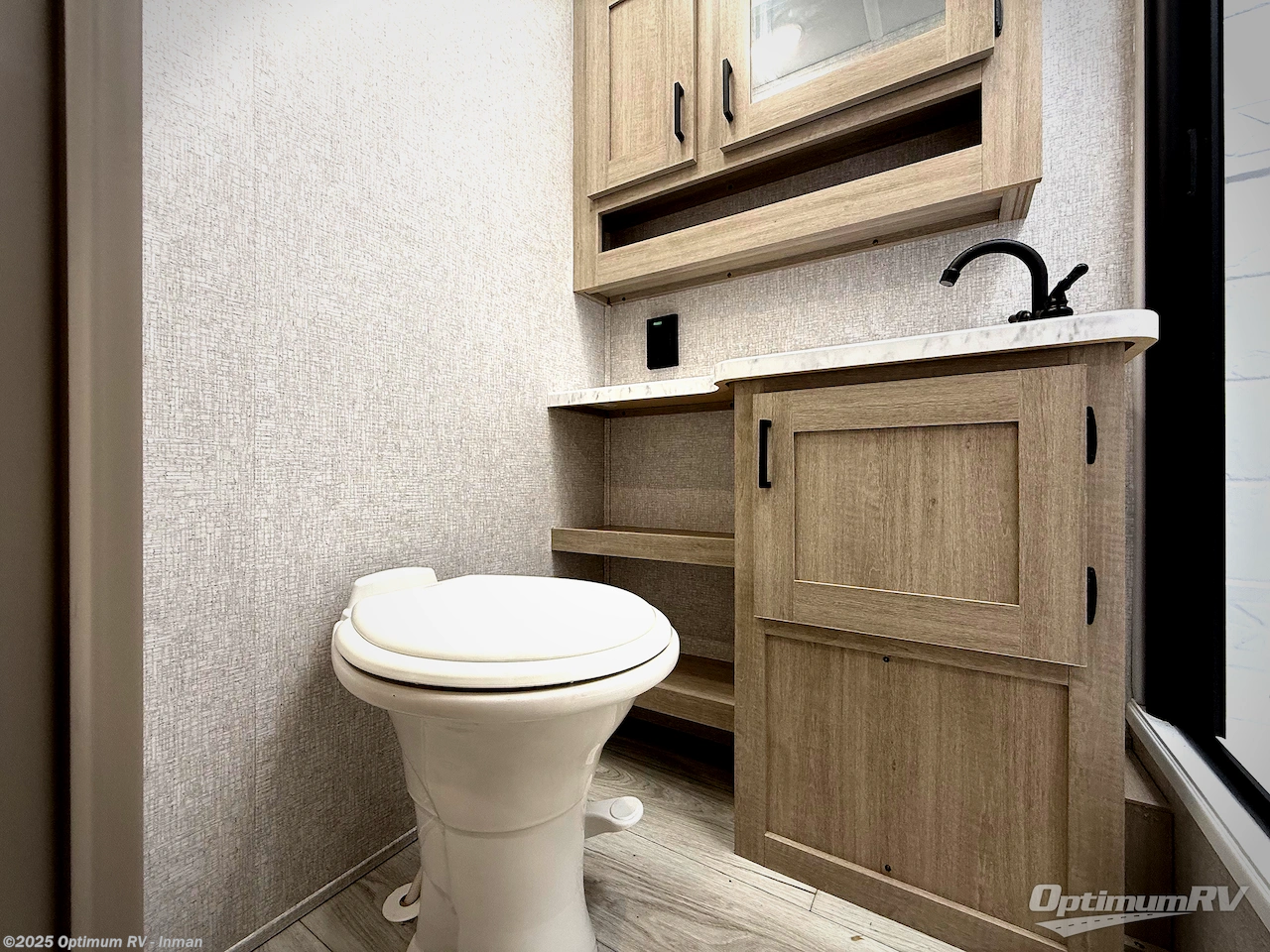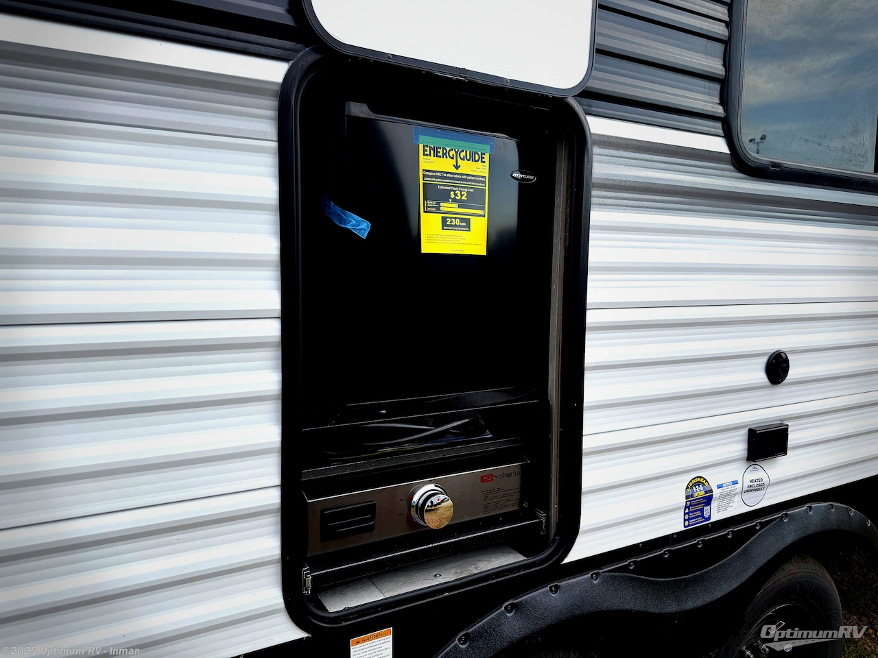 Head to the lake in this travel trailer with a large slide out for more space and comfort! Once you arrive, you can put out the 18' power awning, unload the pass-through storage, and make lunch on the outdoor kitchen with a pull-out griddle and refrigerator. The booth dinette inside can be used as dining space, and there is storage underneath here for added convenience. A jiffy sofa within the slide can be switched out for an optional theater seat if you don't need the extra sleeping space. You will also find a full interior kitchen in the rear corner, and the full bath in the other rear corner is sure to come in handy. When you're ready for some shut-eye, the king bed in the front bedroom will feel just like home. There are also dual wardrobes and nightstands to keep your things tidy!