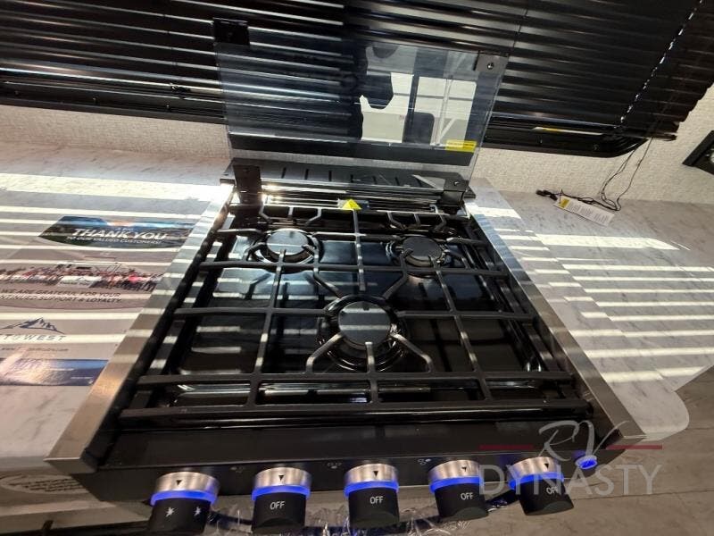 Each Della Terra travel trailer by EAST TO WEST is constructed with an enclosed and heated underbelly and enclosed holding tanks for added protection against the elements. There is also a power tongue jack with an LED light for easy set up and a power awning with LED lights you can rest under after you've unpacked. The Explore Comfort Package comes seamless pressed countertops, kitchen backsplash, window valance package with black night shades, and many more comforts. You will also appreciate the Adventure Outdoor Package with backup camera prep and solar prep, a tankless water heater, an RV grill quick disconnect, and a universal docking station with battery disconnect.