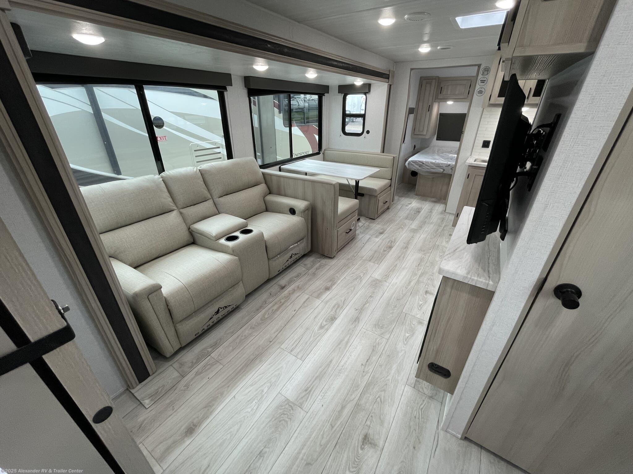 **THEATER SEATING, POWER STABILIZER JACKS, 200 WATT ROOF MOUNTED SOLAR PANEL & SMART TV OPTIONS ADDED TO THIS UNIT ONLY!!**