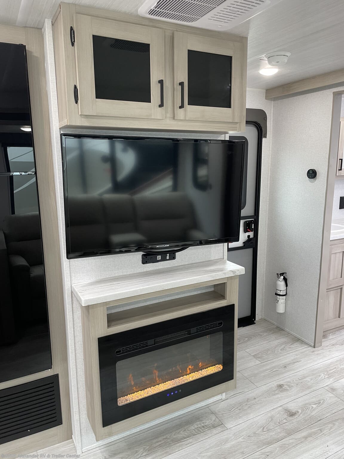 Booth Dinette, Fireplace, King Size Bed, Medicine Cabinet, Pantry, Roof Vents, Shower, Theater Seating, Toilet -