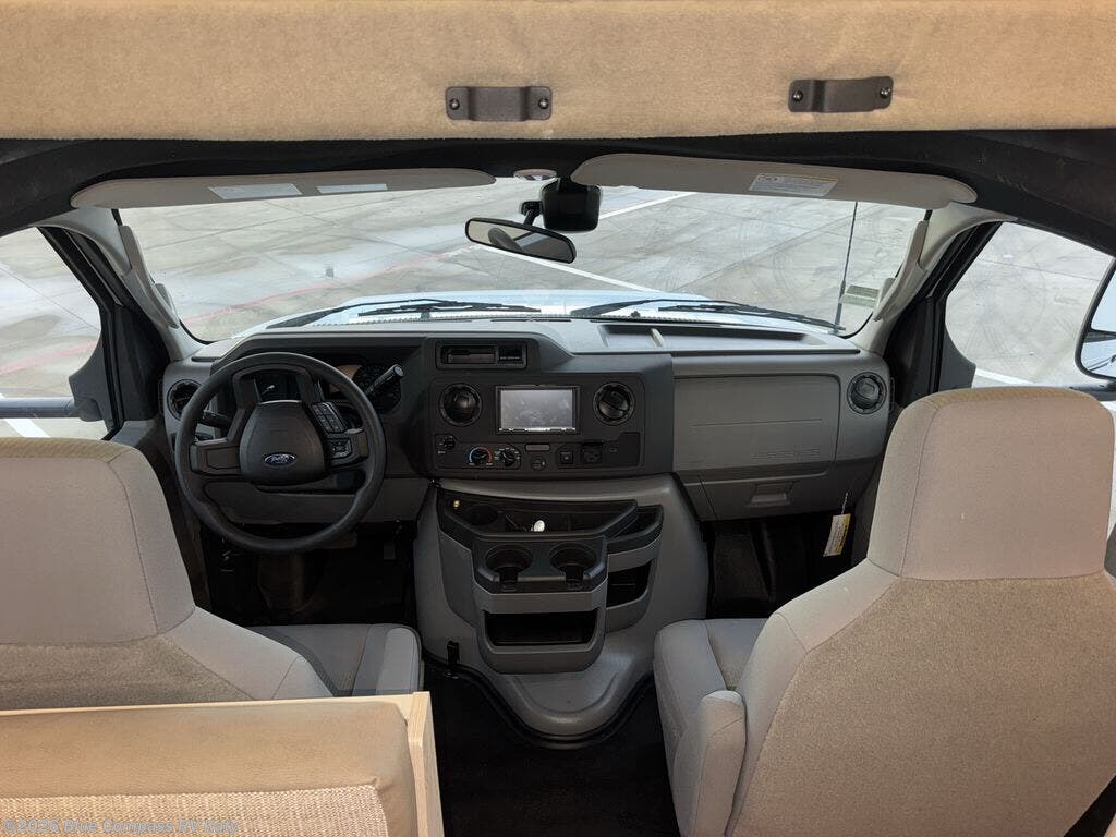 With any Entrada Class C gas motorhome from EAST TO WEST, the construction consists of a one-piece painted fiberglass front cap, a TPO roof membrane, and 2" Azdel composite sidewalls for added durability. There are rotocast exterior storage compartments with slam latch doors, along with an exterior LP Quick Connect, and a power awning with an LED light strip. You will also find rear and sideview cameras to help make maneuvering and parking your RV easier than ever. Inside, you'll feel right at home with soft close hardwood cabinet doors and drawers, a high-altitude tankless water heater, plus a 12V smart TV and USB ports to keep your electronics charged up!
