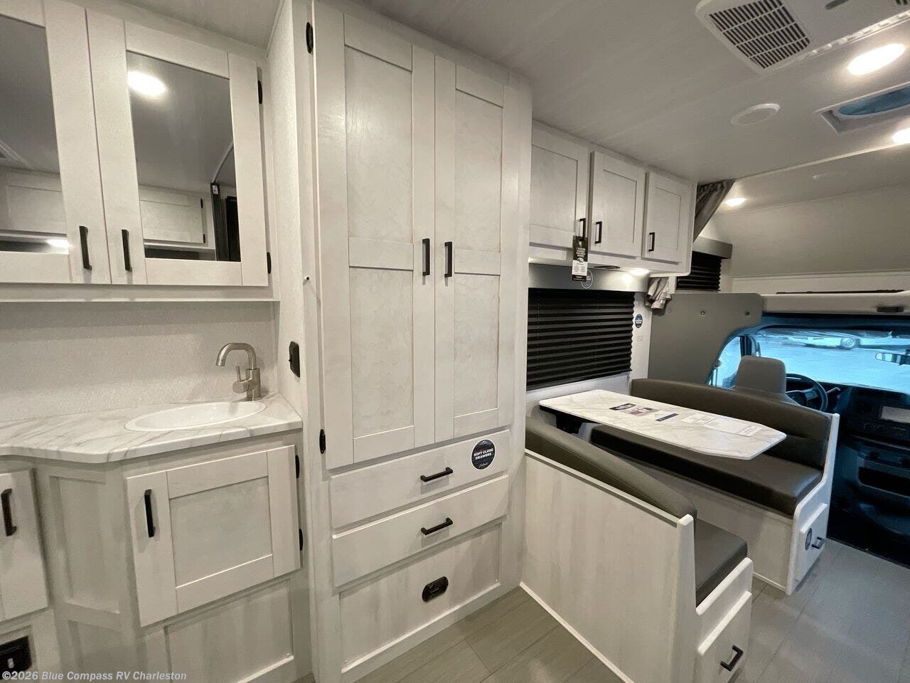 With any Entrada Class C gas motorhome from EAST TO WEST, the construction consists of a one-piece painted fiberglass front cap, a TPO roof membrane, and 2" Azdel composite sidewalls for added durability. There are rotocast exterior storage compartments with slam latch doors, along with an exterior LP Quick Connect, and a power awning with an LED light strip. You will also find rear and sideview cameras to help make maneuvering and parking your RV easier than ever. Inside, you'll feel right at home with soft close hardwood cabinet doors and drawers, a high-altitude tankless water heater, plus a 12V smart TV and USB ports to keep your electronics charged up!