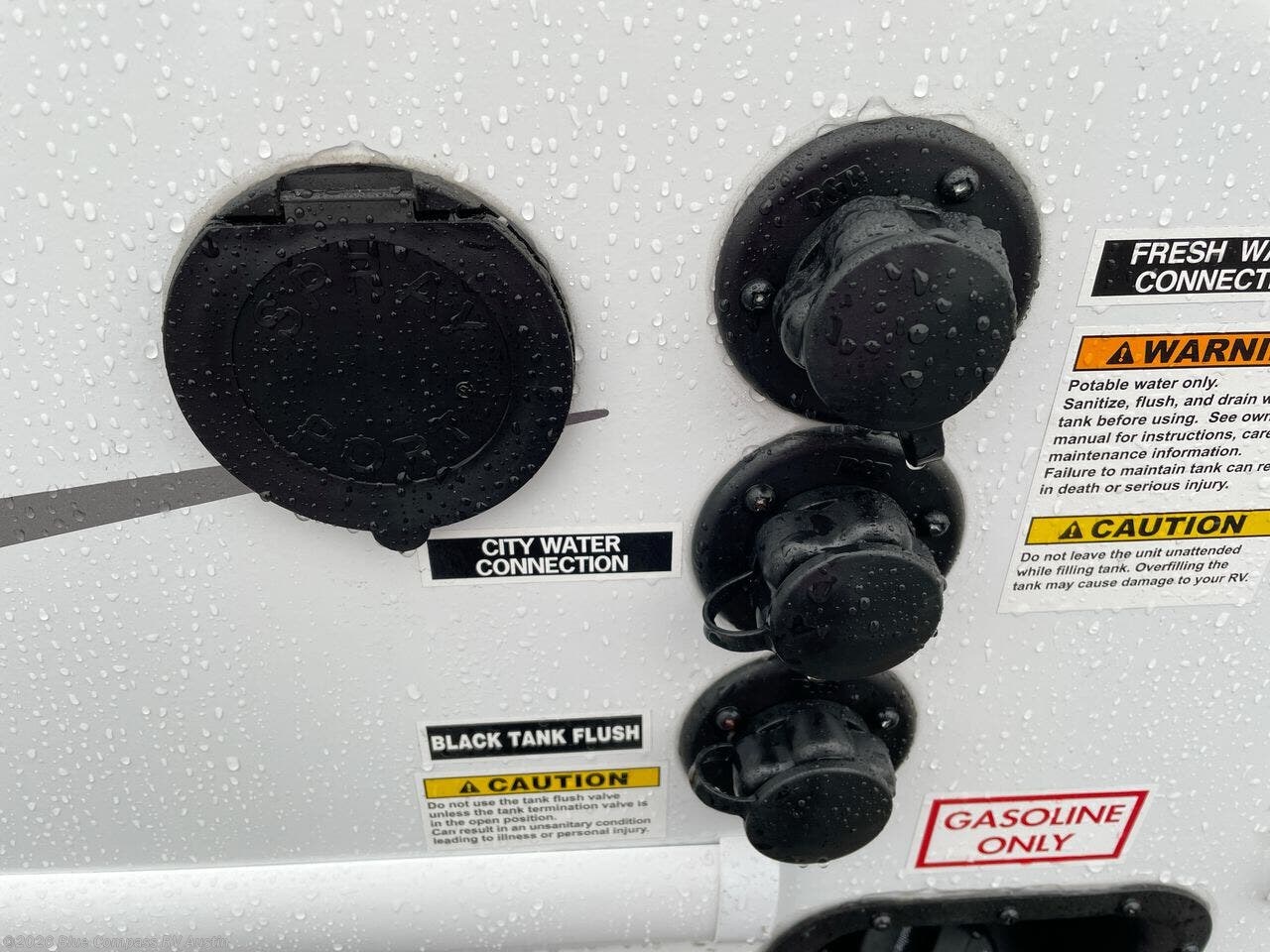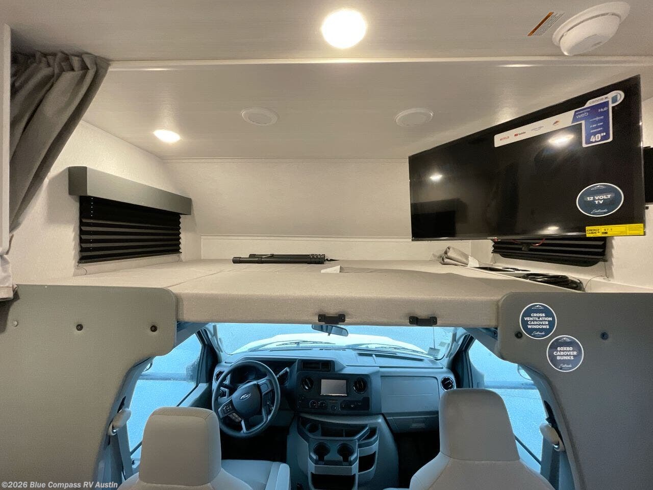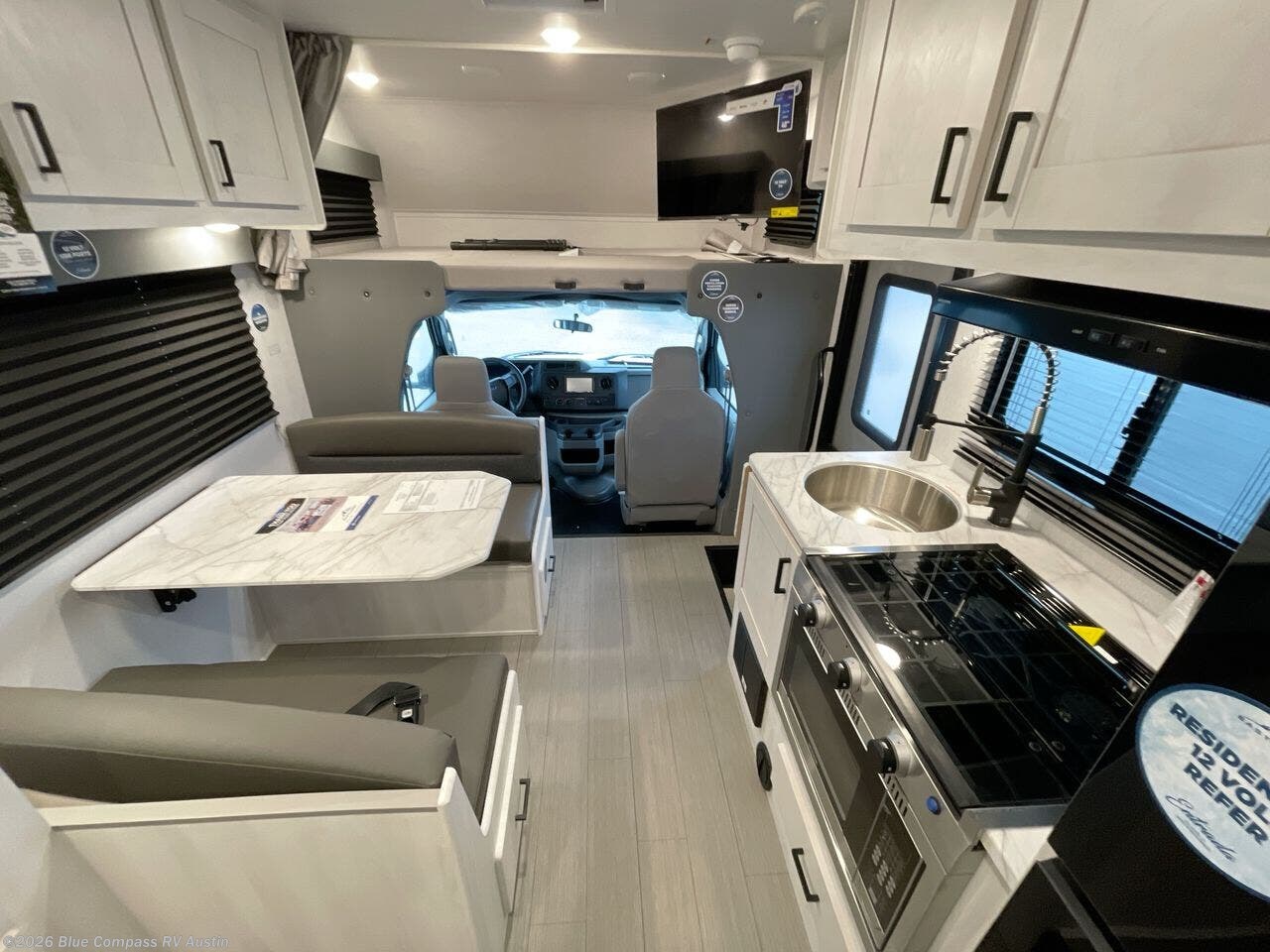 With any Entrada Class C gas motorhome from EAST TO WEST, the construction consists of a one-piece painted fiberglass front cap, a TPO roof membrane, and 2" Azdel composite sidewalls for added durability. There are rotocast exterior storage compartments with slam latch doors, along with an exterior LP Quick Connect, and a power awning with an LED light strip. You will also find rear and sideview cameras to help make maneuvering and parking your RV easier than ever. Inside, you'll feel right at home with soft close hardwood cabinet doors and drawers, a high-altitude tankless water heater, plus a 12V smart TV and USB ports to keep your electronics charged up!
