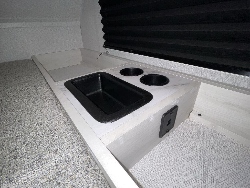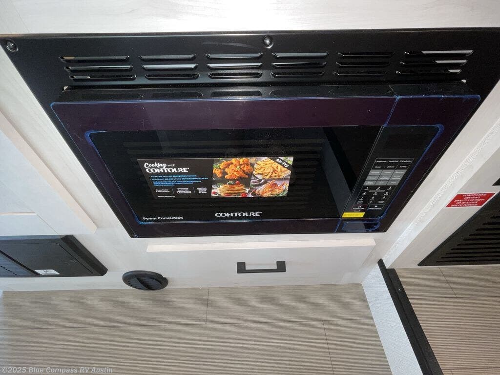 You're going to love traveling and camping in this coach that can sleep five to six each night. The convection microwave and 10.7 cu. ft. 12V refrigerator will let you cook and store food, and the booth dinette provides a place to dine together. A private bath includes a shower and toilet, with the sink just outside this room so two people can freshen up at once. You will sleep soundly each night on the rear corner queen bed with overhead storage for your belongings, while the little ones take the 60" x 80" bunk over cab!