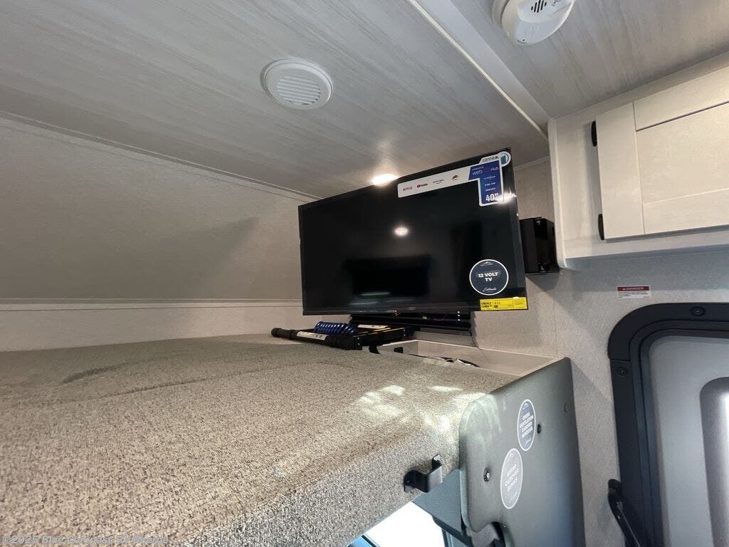 You're going to love traveling and camping in this coach that can sleep five to six each night. The convection microwave and 10.7 cu. ft. 12V refrigerator will let you cook and store food, and the booth dinette provides a place to dine together. A private bath includes a shower and toilet, with the sink just outside this room so two people can freshen up at once. You will sleep soundly each night on the rear corner queen bed with overhead storage for your belongings, while the little ones take the 60" x 80" bunk over cab!