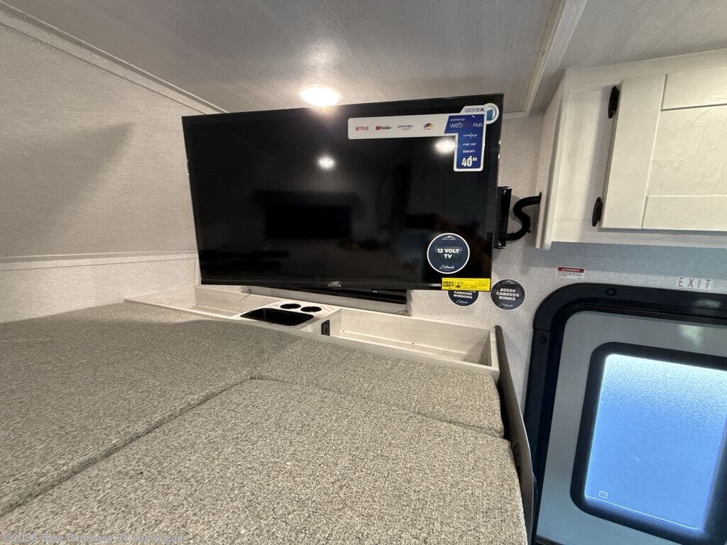You're going to love traveling and camping in this coach that can sleep five to six each night. The convection microwave and 10.7 cu. ft. 12V refrigerator will let you cook and store food, and the booth dinette provides a place to dine together. A private bath includes a shower and toilet, with the sink just outside this room so two people can freshen up at once. You will sleep soundly each night on the rear corner queen bed with overhead storage for your belongings, while the little ones take the 60" x 80" bunk over cab!