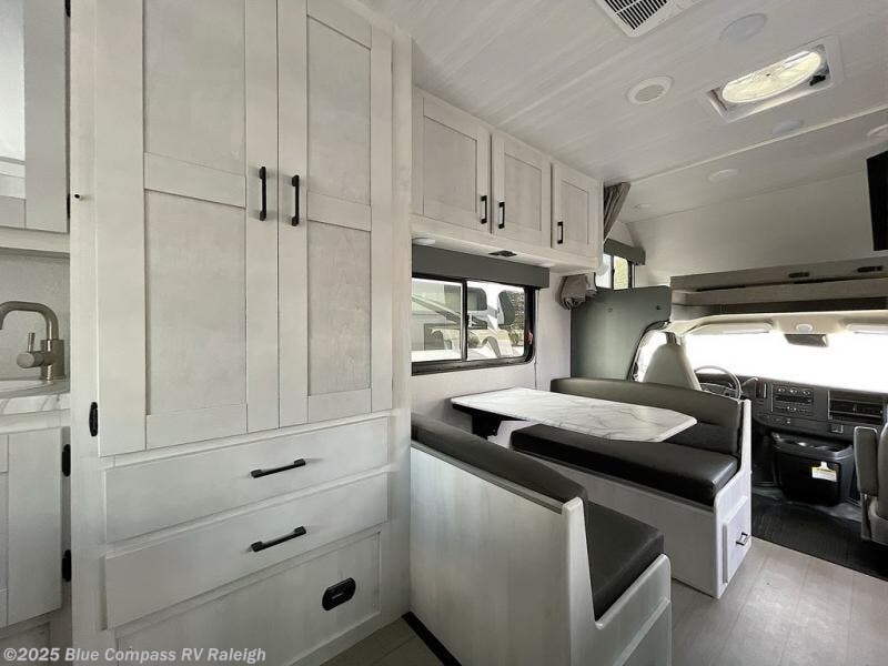 With any Entrada Class C gas motorhome from EAST TO WEST, the construction consists of an automotive painted fiberglass front cap, a Dicor DiFlex ll TPO roof membrane, and Azdel composite sidewalls for added durability. Some of the Entrada value package features include 12V tank heaters to camp during the cooler months, the Winegard Air 360+, plus backup and sideview cameras with a monitor for safety on and off the road. The interior offers a 7-foot interior height for a spacious feel, and 12V USB charge ports will keep your electronics powered up. Choose an Entrada for its tasteful design, attention to detail, bright interior and affordable price-point!