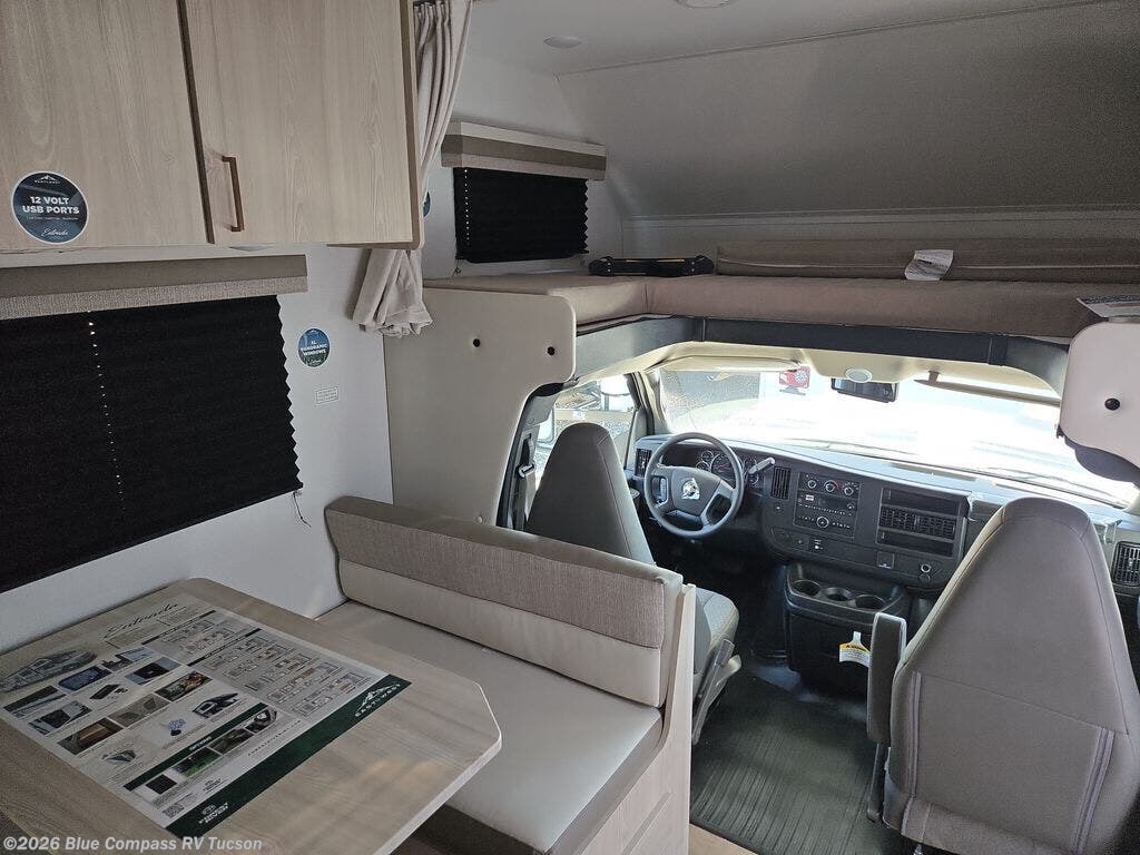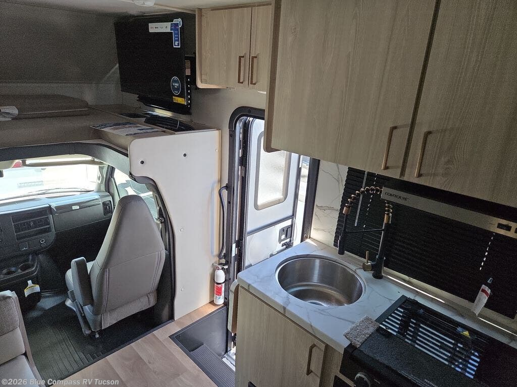 With any Entrada Class C gas motorhome from EAST TO WEST, the construction consists of a one-piece painted fiberglass front cap, a TPO roof membrane, and 2" Azdel composite sidewalls for added durability. There are rotocast exterior storage compartments with slam latch doors, along with an exterior LP Quick Connect, and a power awning with an LED light strip. You will also find rear and sideview cameras to help make maneuvering and parking your RV easier than ever. Inside, you'll feel right at home with soft close hardwood cabinet doors and drawers, a high-altitude tankless water heater, plus a 12V smart TV and USB ports to keep your electronics charged up!