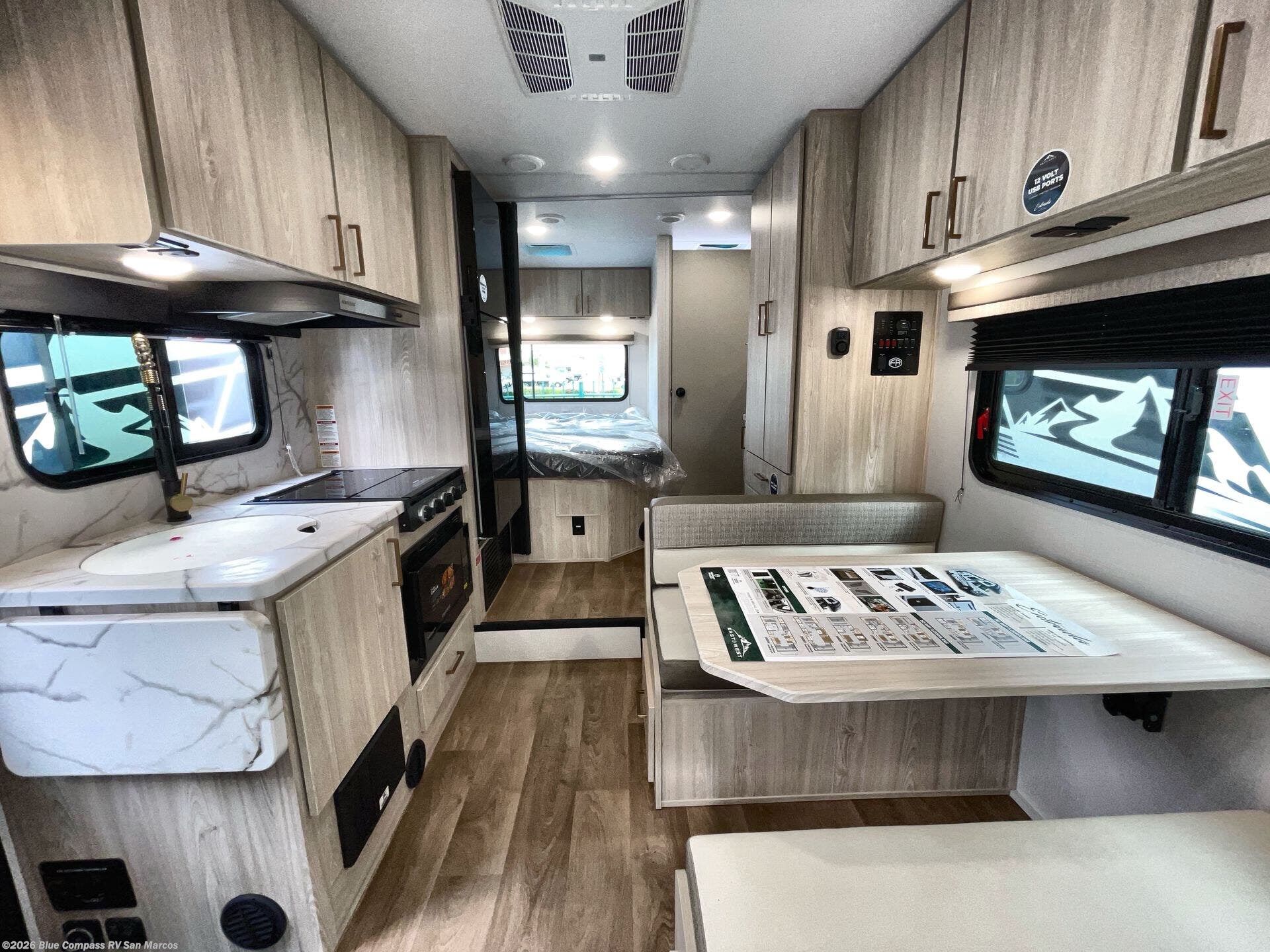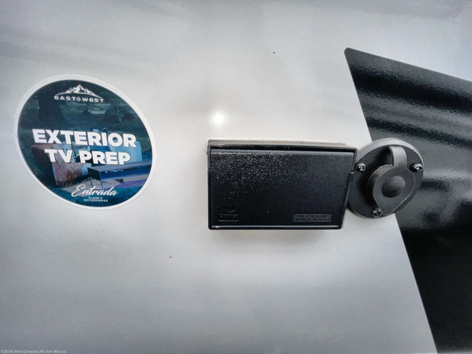 With any Entrada Class C gas motorhome from EAST TO WEST, the construction consists of a one-piece painted fiberglass front cap, a TPO roof membrane, and 2" Azdel composite sidewalls for added durability. There are rotocast exterior storage compartments with slam latch doors, along with an exterior LP Quick Connect, and a power awning with an LED light strip. You will also find rear and sideview cameras to help make maneuvering and parking your RV easier than ever. Inside, you'll feel right at home with soft close hardwood cabinet doors and drawers, a high-altitude tankless water heater, plus a 12V smart TV and USB ports to keep your electronics charged up!