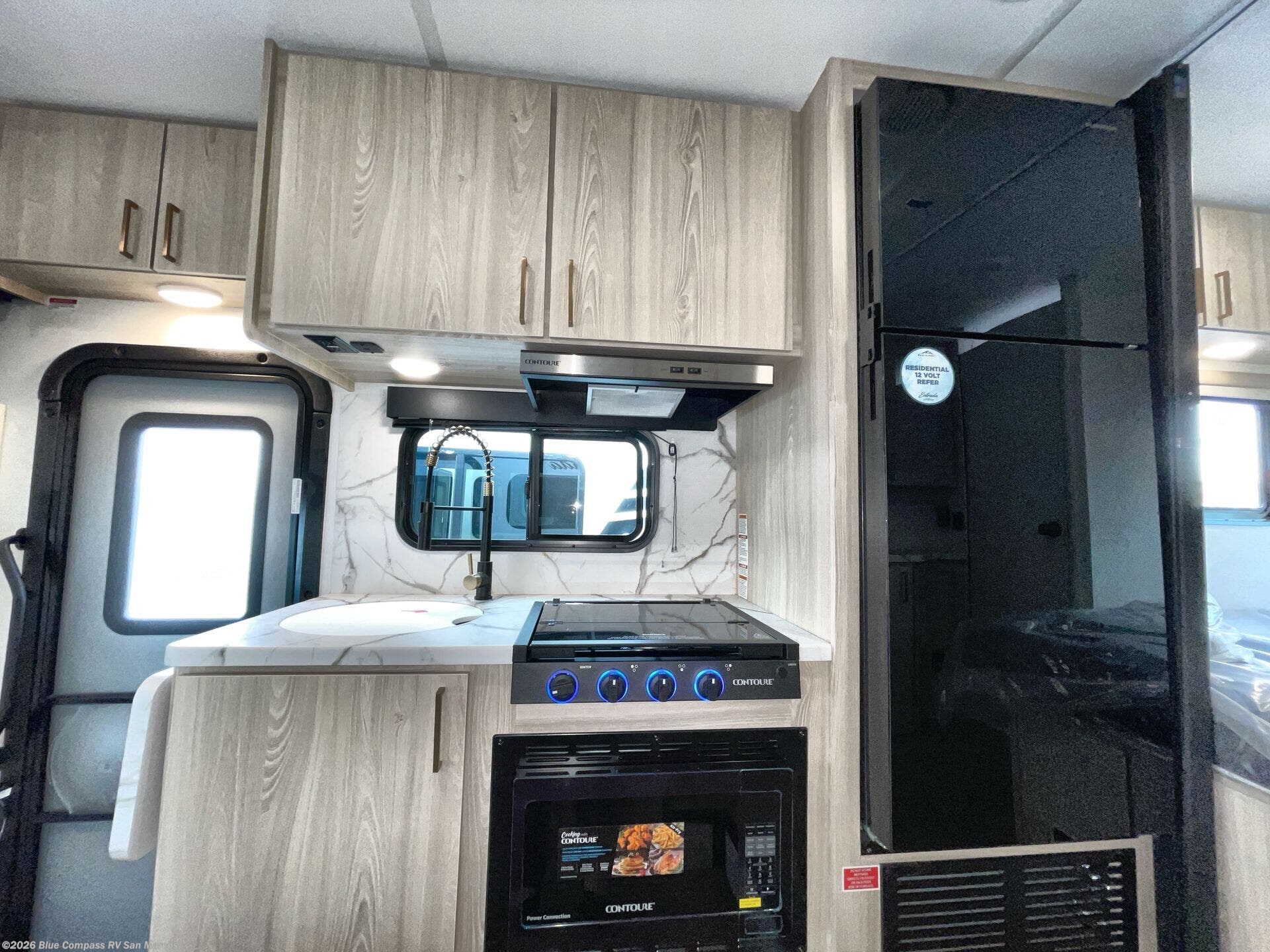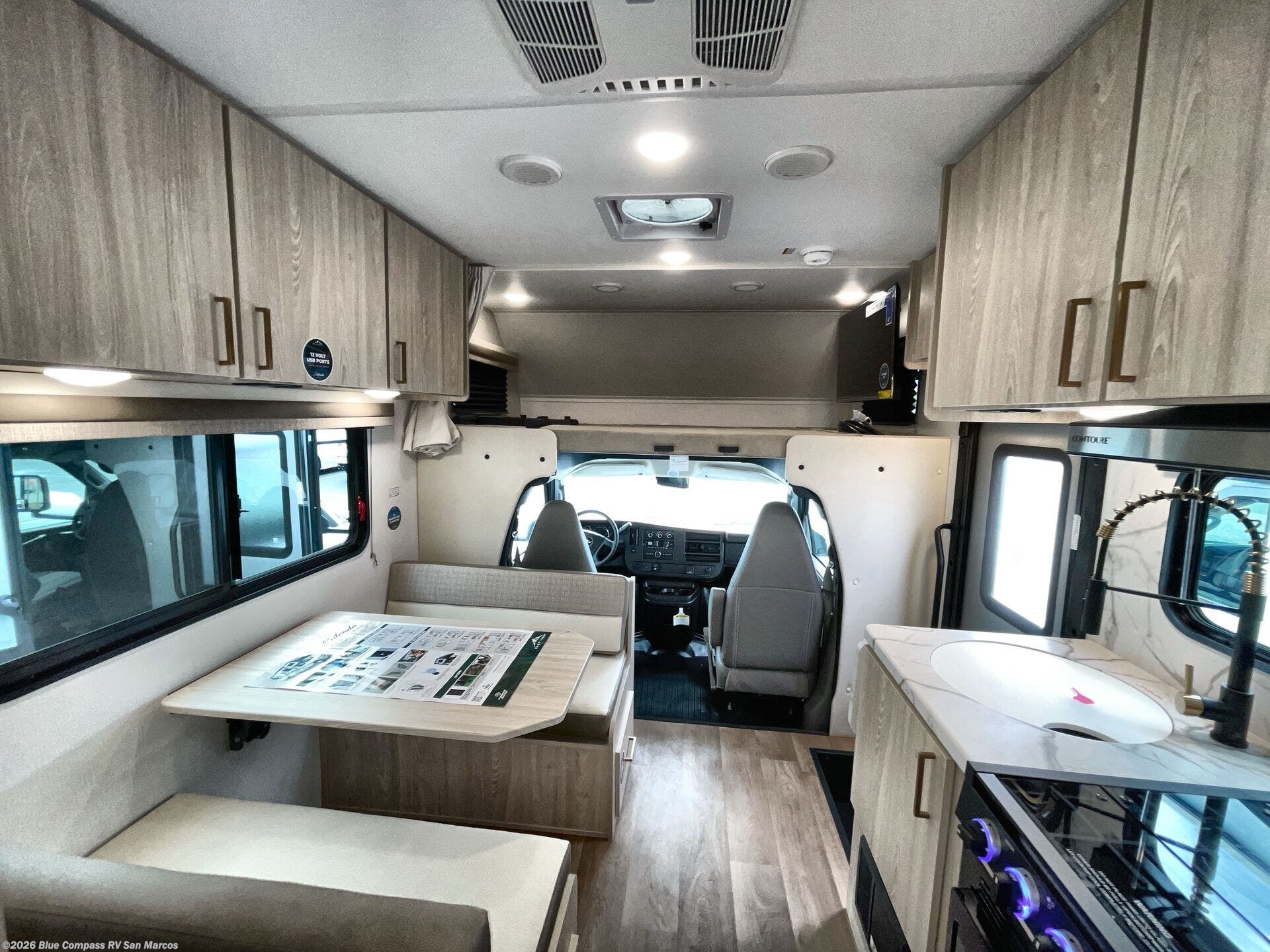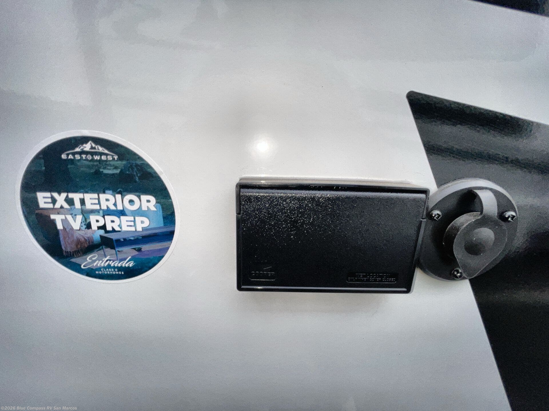With any Entrada Class C gas motorhome from EAST TO WEST, the construction consists of a one-piece painted fiberglass front cap, a TPO roof membrane, and 2" Azdel composite sidewalls for added durability. There are rotocast exterior storage compartments with slam latch doors, along with an exterior LP Quick Connect, and a power awning with an LED light strip. You will also find rear and sideview cameras to help make maneuvering and parking your RV easier than ever. Inside, you'll feel right at home with soft close hardwood cabinet doors and drawers, a high-altitude tankless water heater, plus a 12V smart TV and USB ports to keep your electronics charged up!