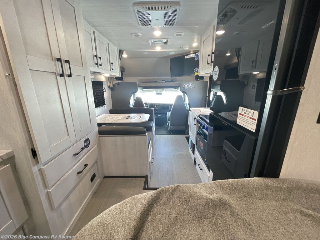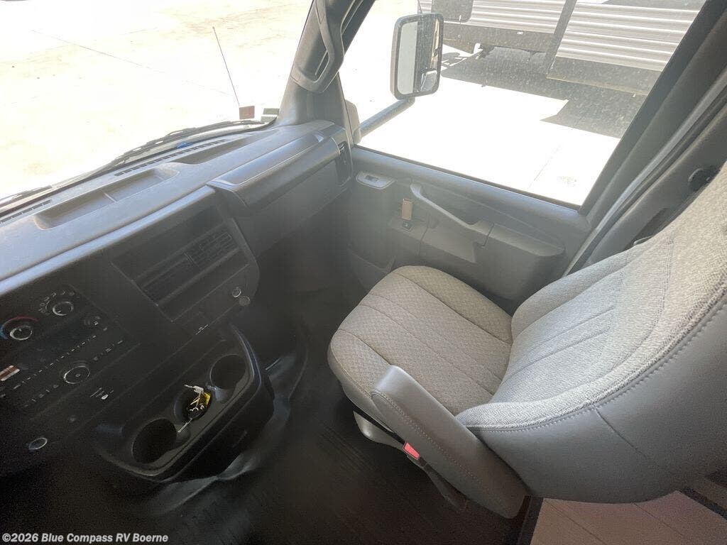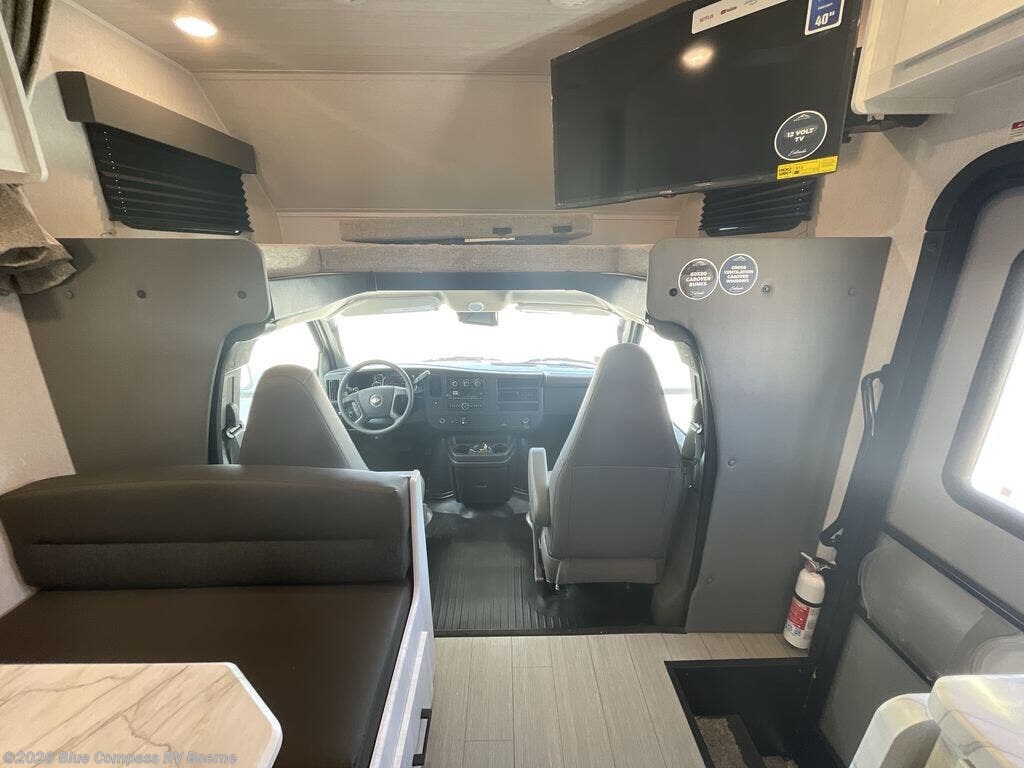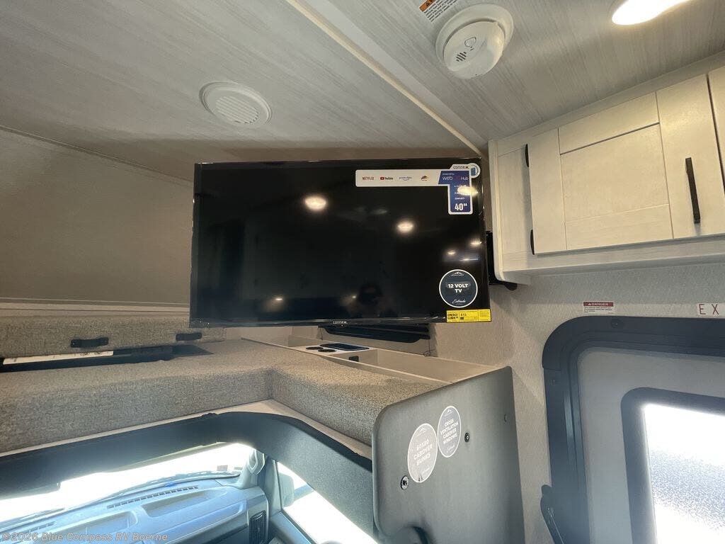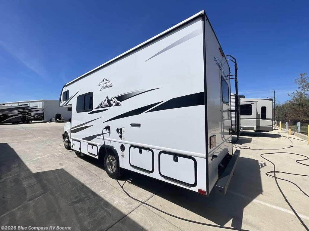 With any Entrada Class C gas motorhome from EAST TO WEST, the construction consists of a one-piece painted fiberglass front cap, a TPO roof membrane, and 2" Azdel composite sidewalls for added durability. There are rotocast exterior storage compartments with slam latch doors, along with an exterior LP Quick Connect, and a power awning with an LED light strip. You will also find rear and sideview cameras to help make maneuvering and parking your RV easier than ever. Inside, you'll feel right at home with soft close hardwood cabinet doors and drawers, a high-altitude tankless water heater, plus a 12V smart TV and USB ports to keep your electronics charged up!