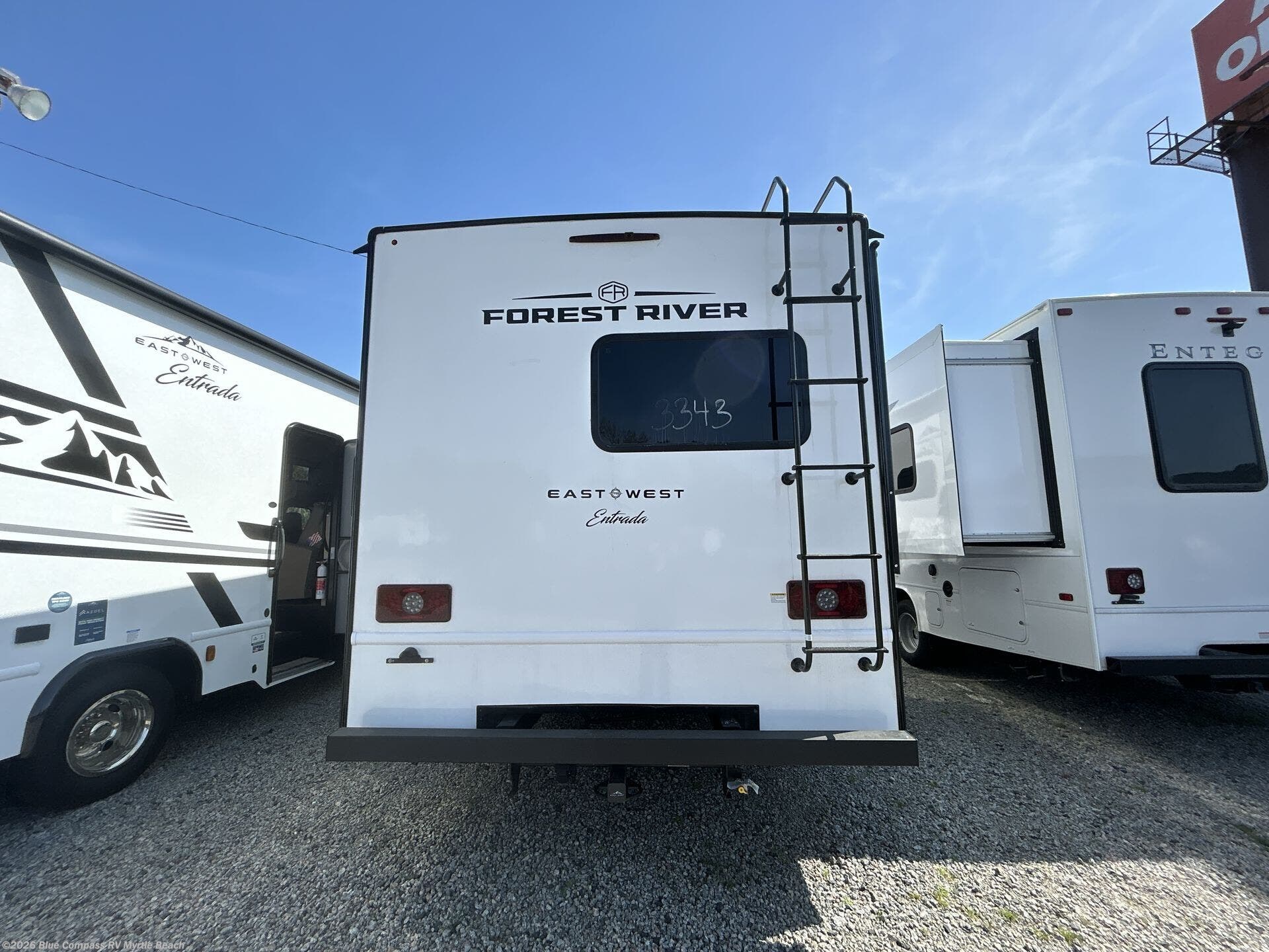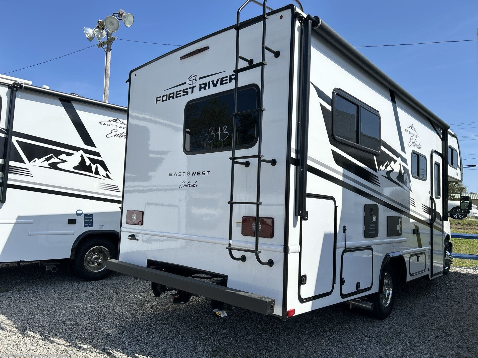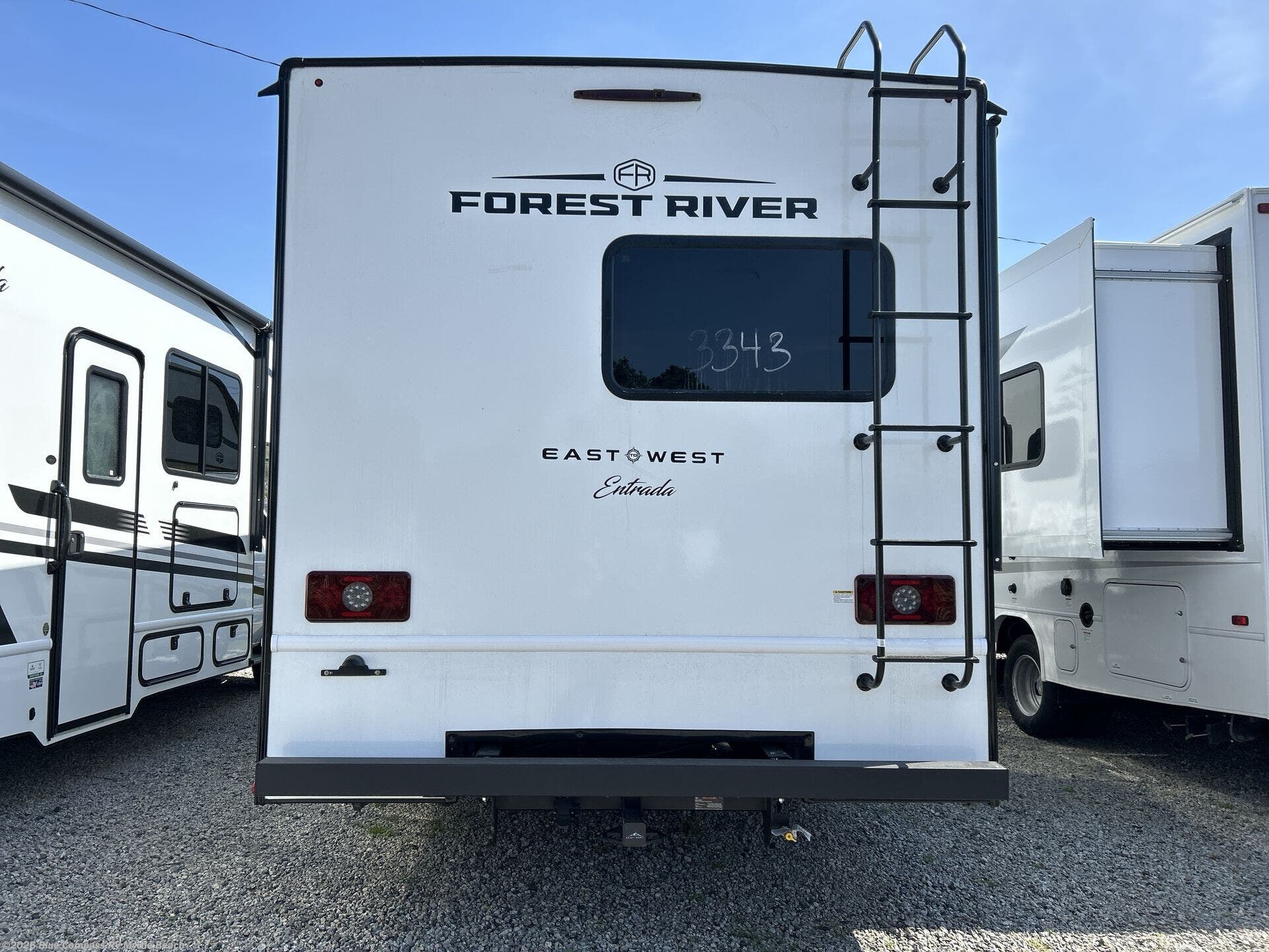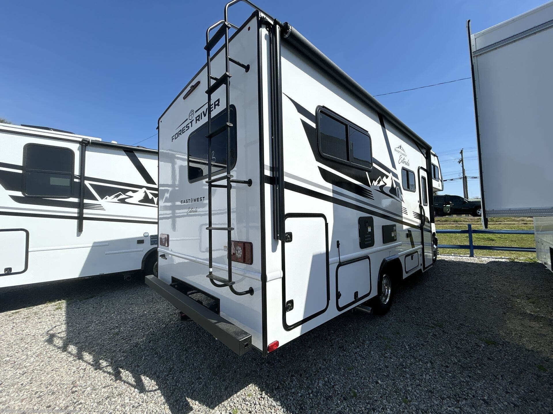 With any Entrada Class C gas motorhome from EAST TO WEST, the construction consists of a one-piece painted fiberglass front cap, a TPO roof membrane, and 2" Azdel composite sidewalls for added durability. There are rotocast exterior storage compartments with slam latch doors, along with an exterior LP Quick Connect, and a power awning with an LED light strip. You will also find rear and sideview cameras to help make maneuvering and parking your RV easier than ever. Inside, you'll feel right at home with soft close hardwood cabinet doors and drawers, a high-altitude tankless water heater, plus a 12V smart TV and USB ports to keep your electronics charged up!