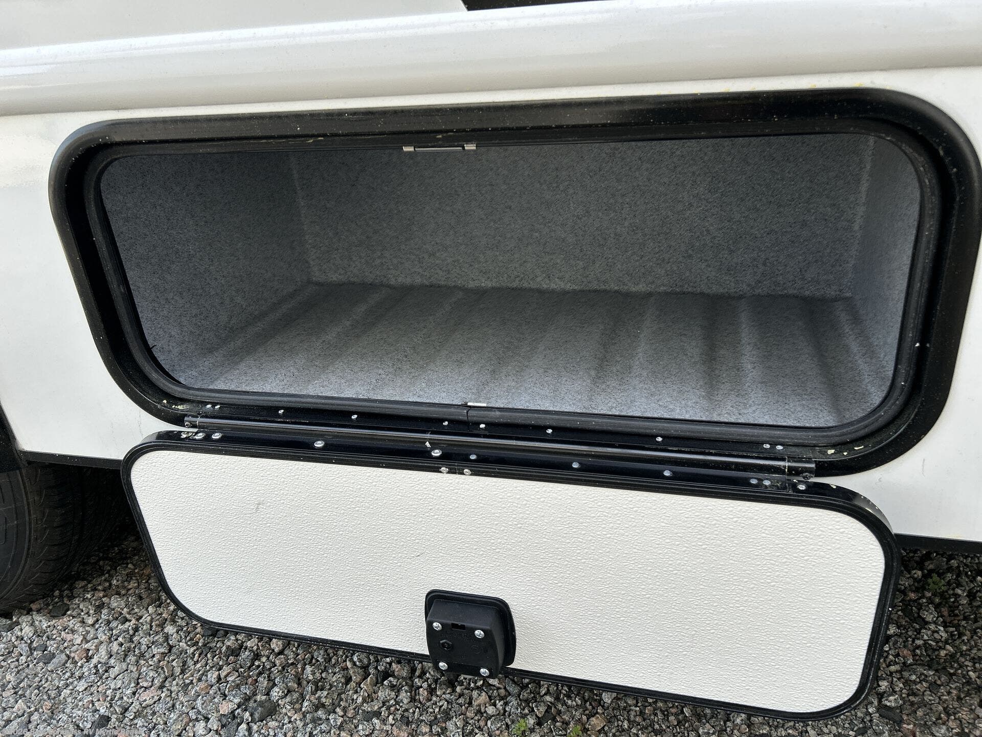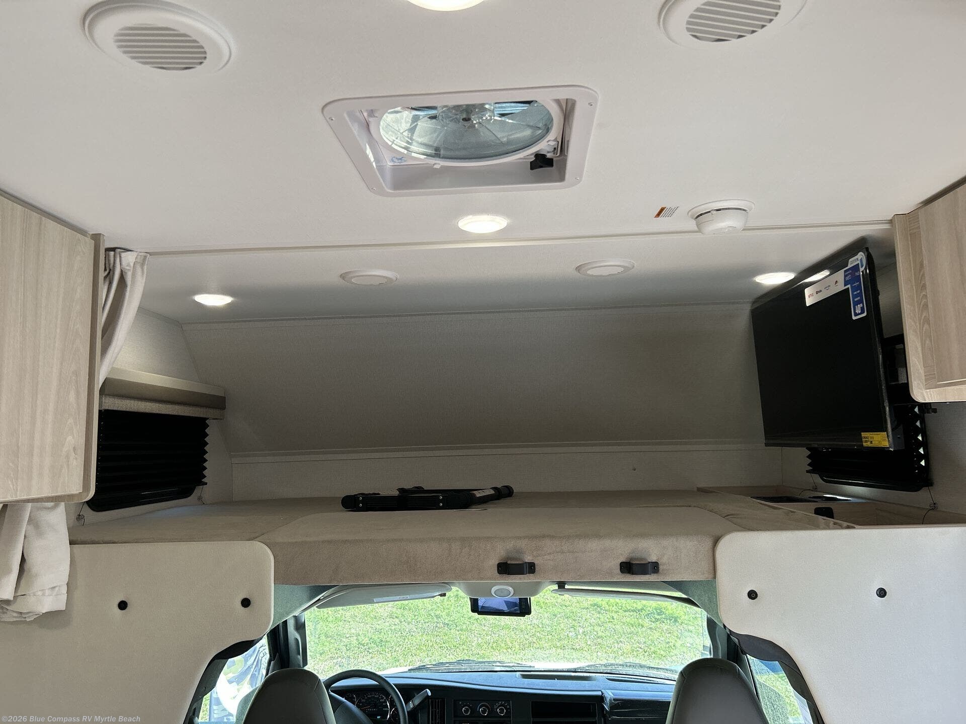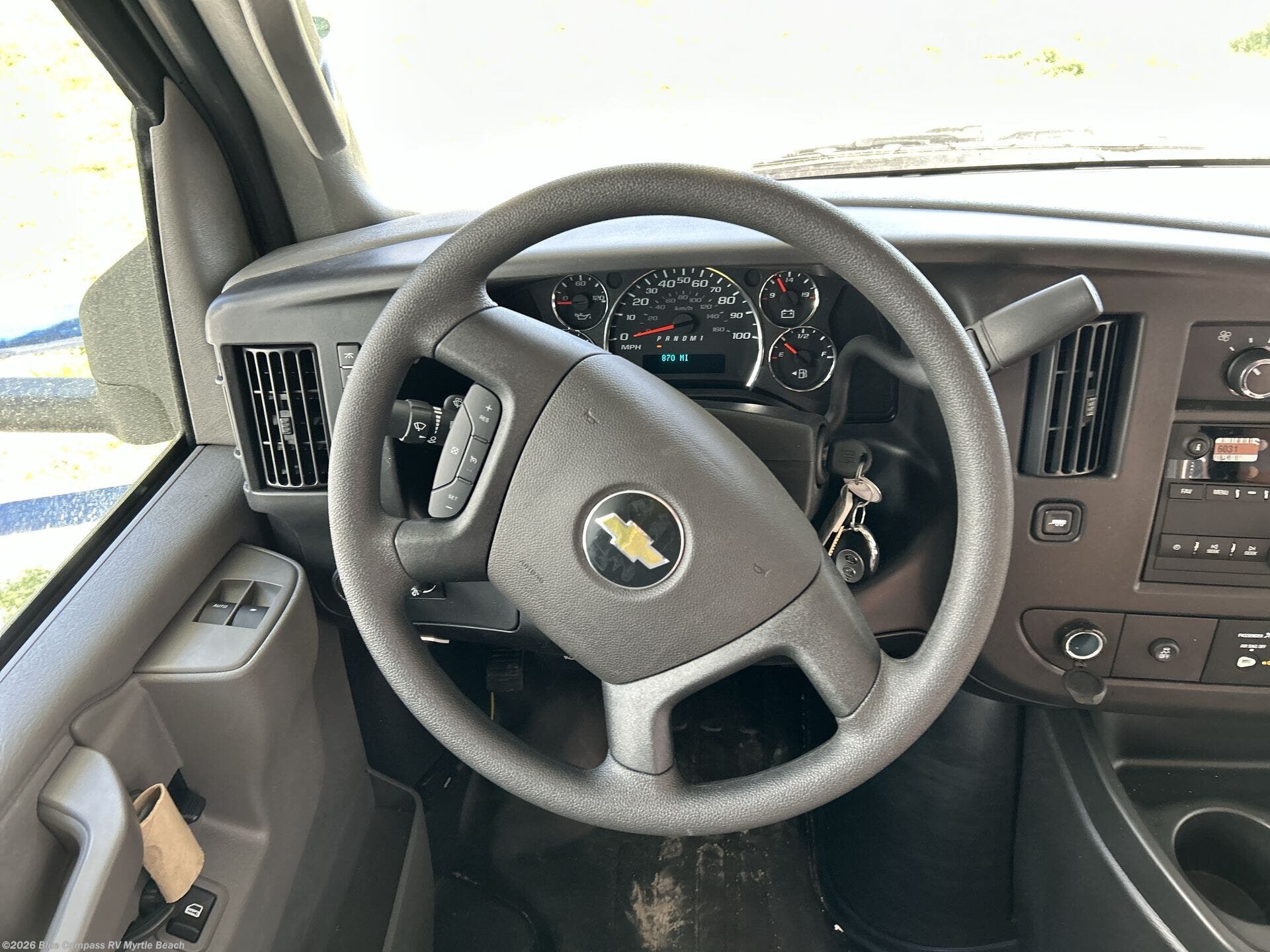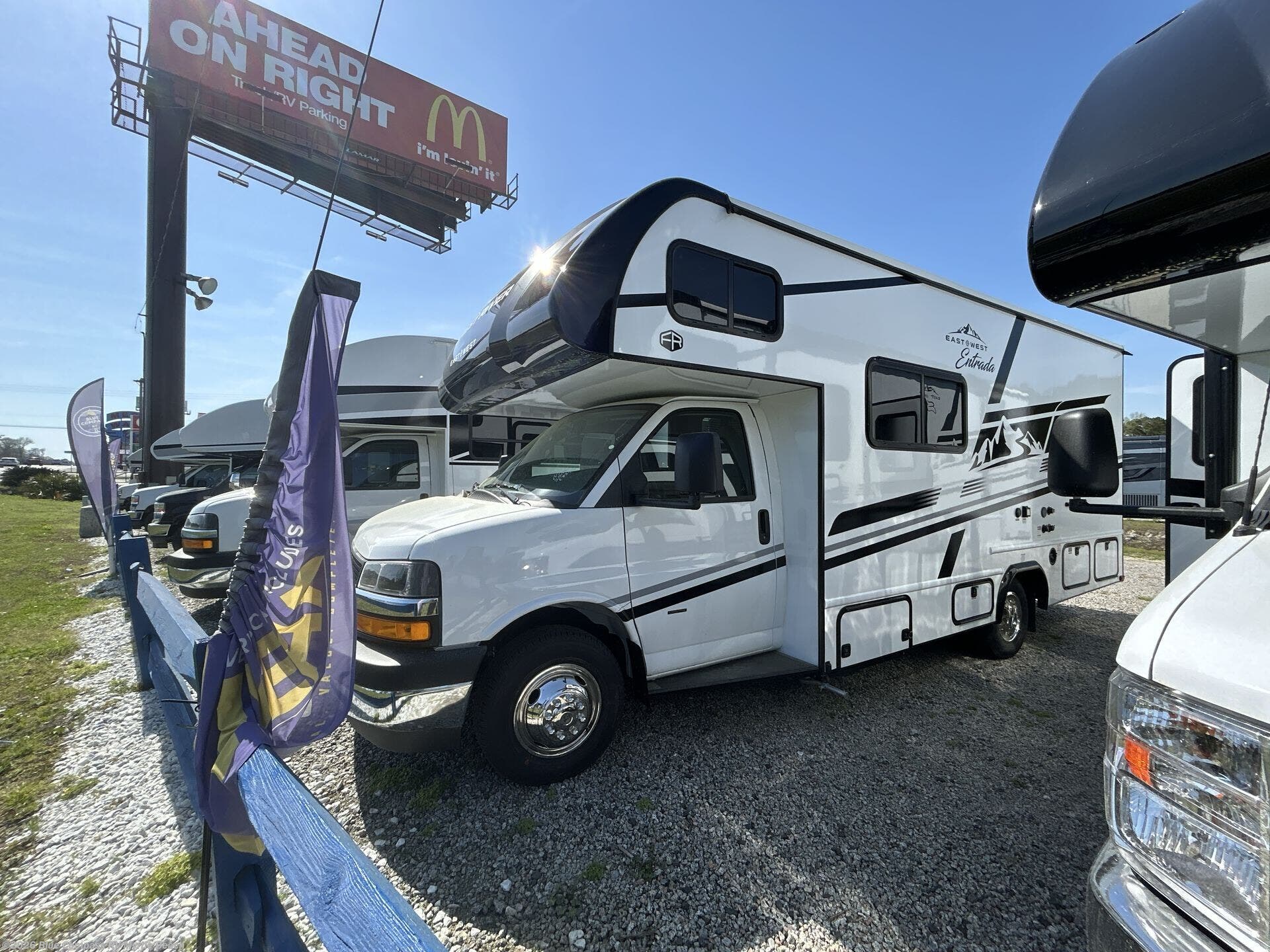 With any Entrada Class C gas motorhome from EAST TO WEST, the construction consists of a one-piece painted fiberglass front cap, a TPO roof membrane, and 2" Azdel composite sidewalls for added durability. There are rotocast exterior storage compartments with slam latch doors, along with an exterior LP Quick Connect, and a power awning with an LED light strip. You will also find rear and sideview cameras to help make maneuvering and parking your RV easier than ever. Inside, you'll feel right at home with soft close hardwood cabinet doors and drawers, a high-altitude tankless water heater, plus a 12V smart TV and USB ports to keep your electronics charged up!