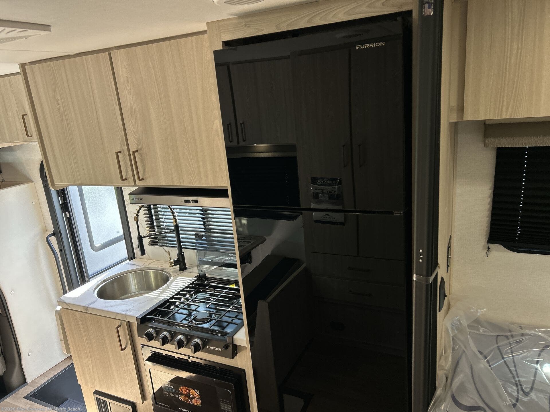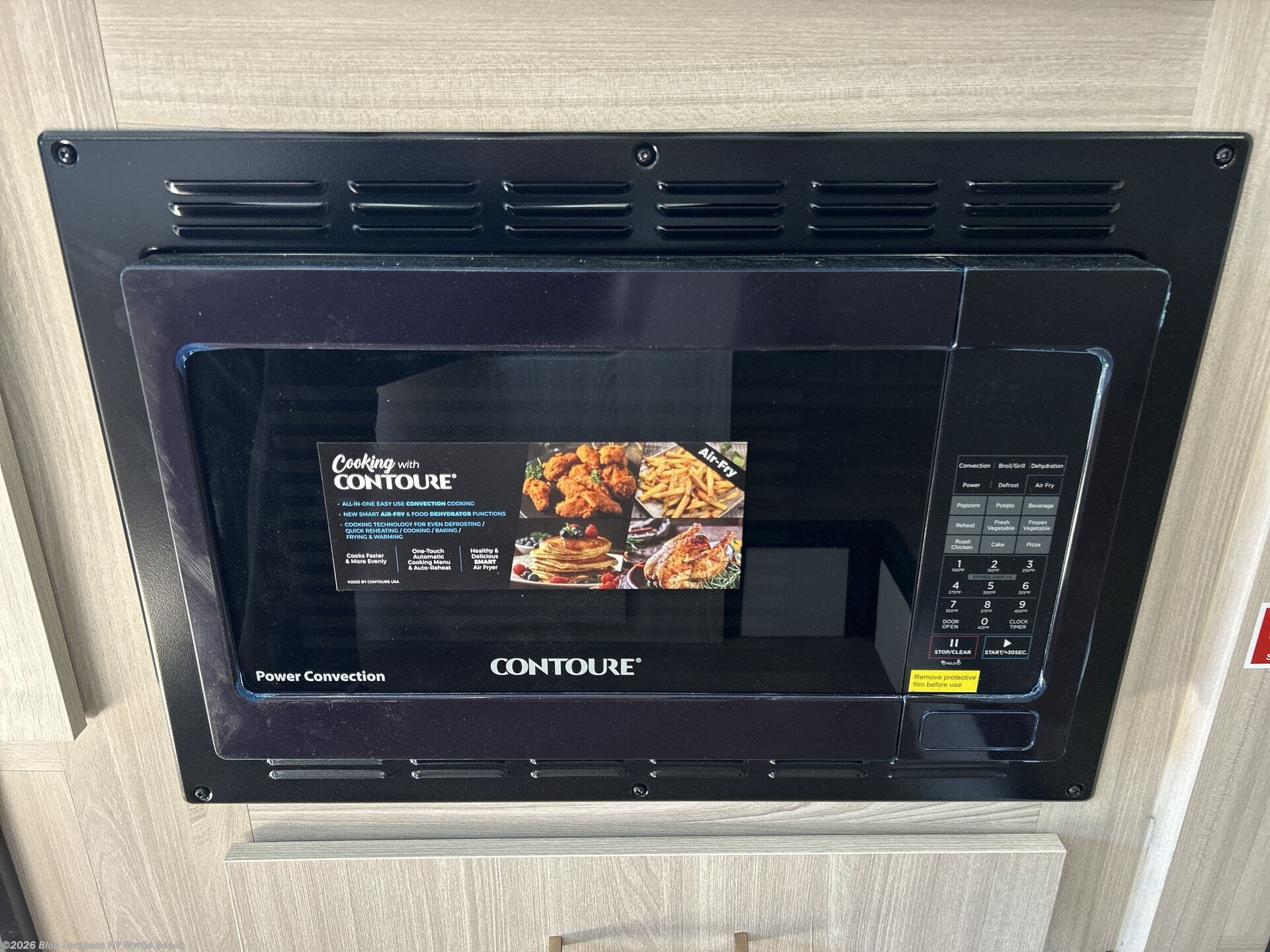You're going to love traveling and camping in this coach that can sleep five to six each night. The convection microwave and 10.7 cu. ft. 12V refrigerator will let you cook and store food, and the booth dinette provides a place to dine together. A private bath includes a shower and toilet, with the sink just outside this room so two people can freshen up at once. You will sleep soundly each night on the rear corner queen bed with overhead storage for your belongings, while the little ones take the 60" x 80" bunk over cab!