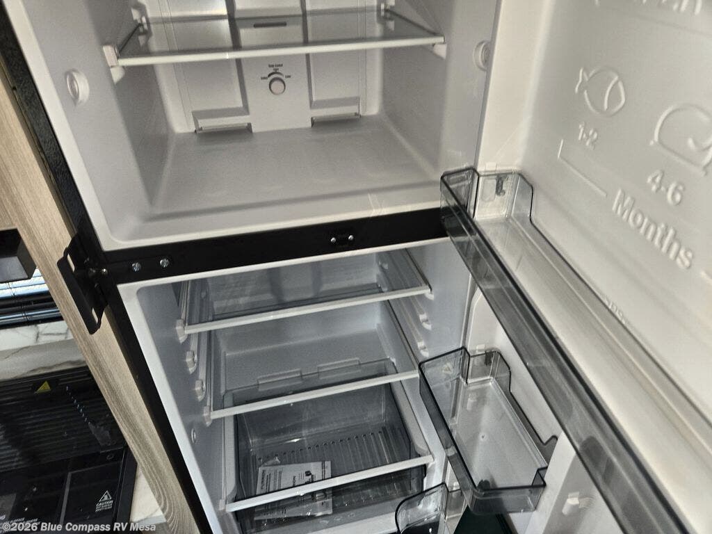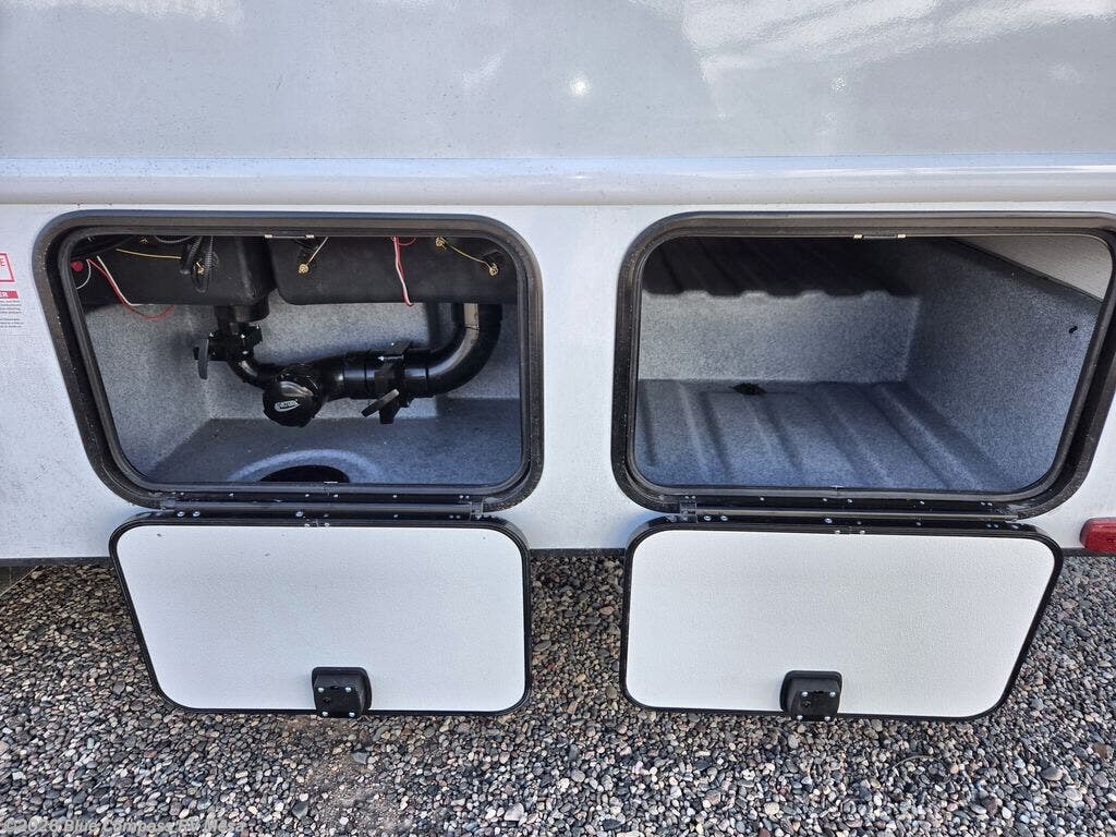 You're going to love traveling and camping in this coach that can sleep five to six each night. The convection microwave and 10.7 cu. ft. 12V refrigerator will let you cook and store food, and the booth dinette provides a place to dine together. A private bath includes a shower and toilet, with the sink just outside this room so two people can freshen up at once. You will sleep soundly each night on the rear corner queen bed with overhead storage for your belongings, while the little ones take the 60" x 80" bunk over cab!