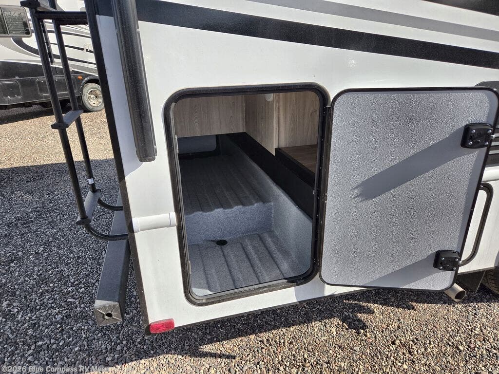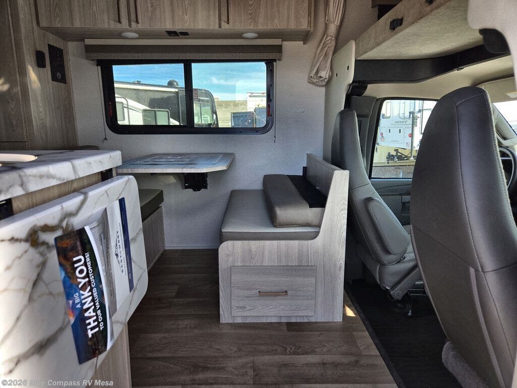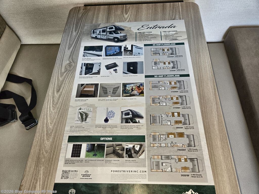 With any Entrada Class C gas motorhome from EAST TO WEST, the construction consists of a one-piece painted fiberglass front cap, a TPO roof membrane, and 2" Azdel composite sidewalls for added durability. There are rotocast exterior storage compartments with slam latch doors, along with an exterior LP Quick Connect, and a power awning with an LED light strip. You will also find rear and sideview cameras to help make maneuvering and parking your RV easier than ever. Inside, you'll feel right at home with soft close hardwood cabinet doors and drawers, a high-altitude tankless water heater, plus a 12V smart TV and USB ports to keep your electronics charged up!