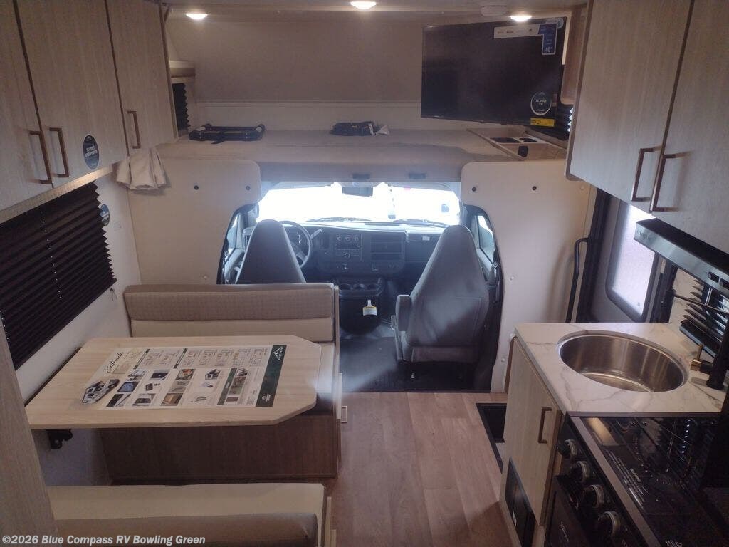 With any Entrada Class C gas motorhome from EAST TO WEST, the construction consists of a one-piece painted fiberglass front cap, a TPO roof membrane, and 2" Azdel composite sidewalls for added durability. There are rotocast exterior storage compartments with slam latch doors, along with an exterior LP Quick Connect, and a power awning with an LED light strip. You will also find rear and sideview cameras to help make maneuvering and parking your RV easier than ever. Inside, you'll feel right at home with soft close hardwood cabinet doors and drawers, a high-altitude tankless water heater, plus a 12V smart TV and USB ports to keep your electronics charged up!