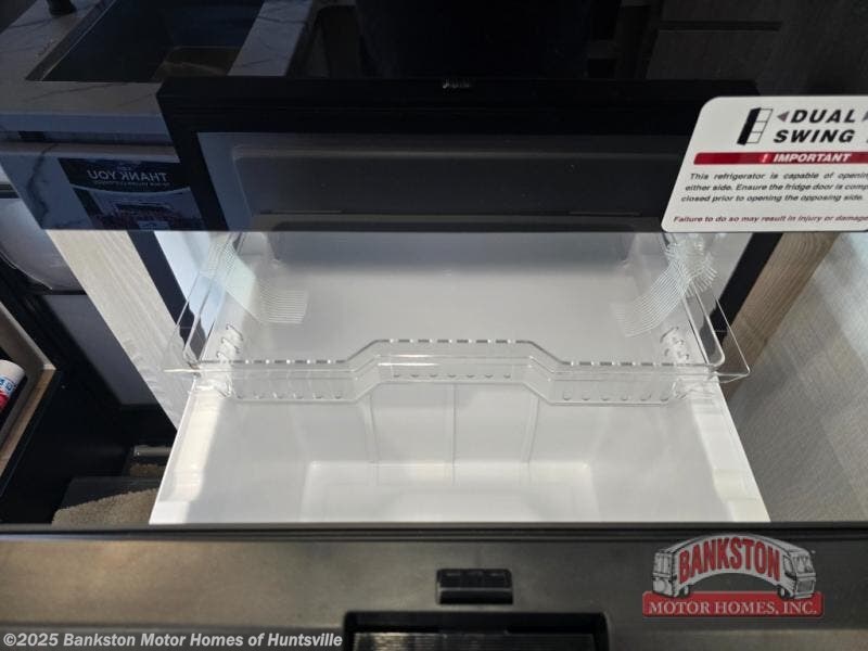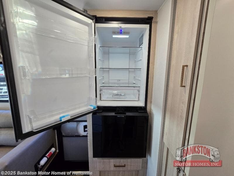 Comfort comes easy in this coach! There is a 62" sofa and 42" x 68" booth dinette that can be used for lounging together after an afternoon of walking around the campground, plus the bunk over the cab and the queen-size bed can be utilized if you are too tired to stay up for another minute. Once you are fully rested, head to the kitchen to prepare a delicious breakfast feast with the cooktop and convection microwave with air fryer technology. Use the double sink to clean up, and the 10.7-cubic foot refrigerator to keep your perishables fresh. You can even add some extra prep space to this area by pulling out the flip-up countertop. There is also storage all throughout this motorhome with bedside closets, the bathroom shelves, a kitchen pantry, cab storage, and within overhead cabinets.