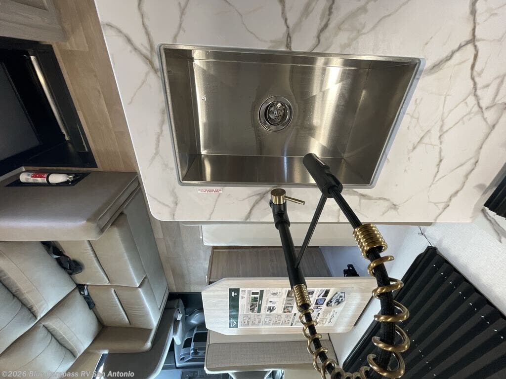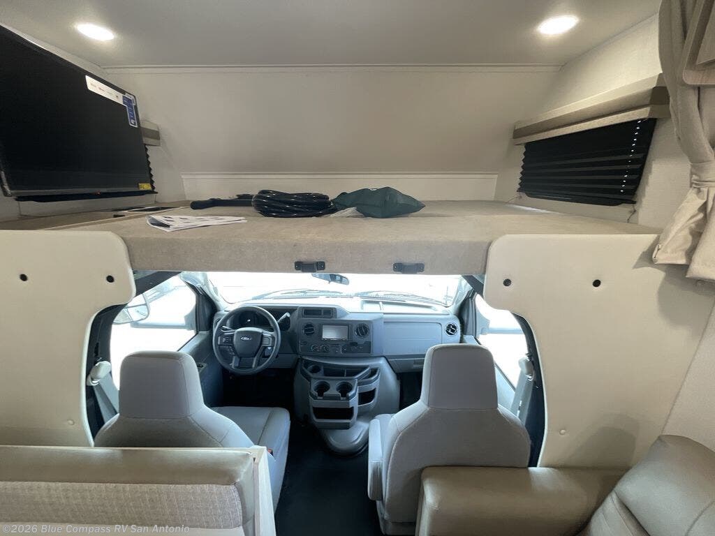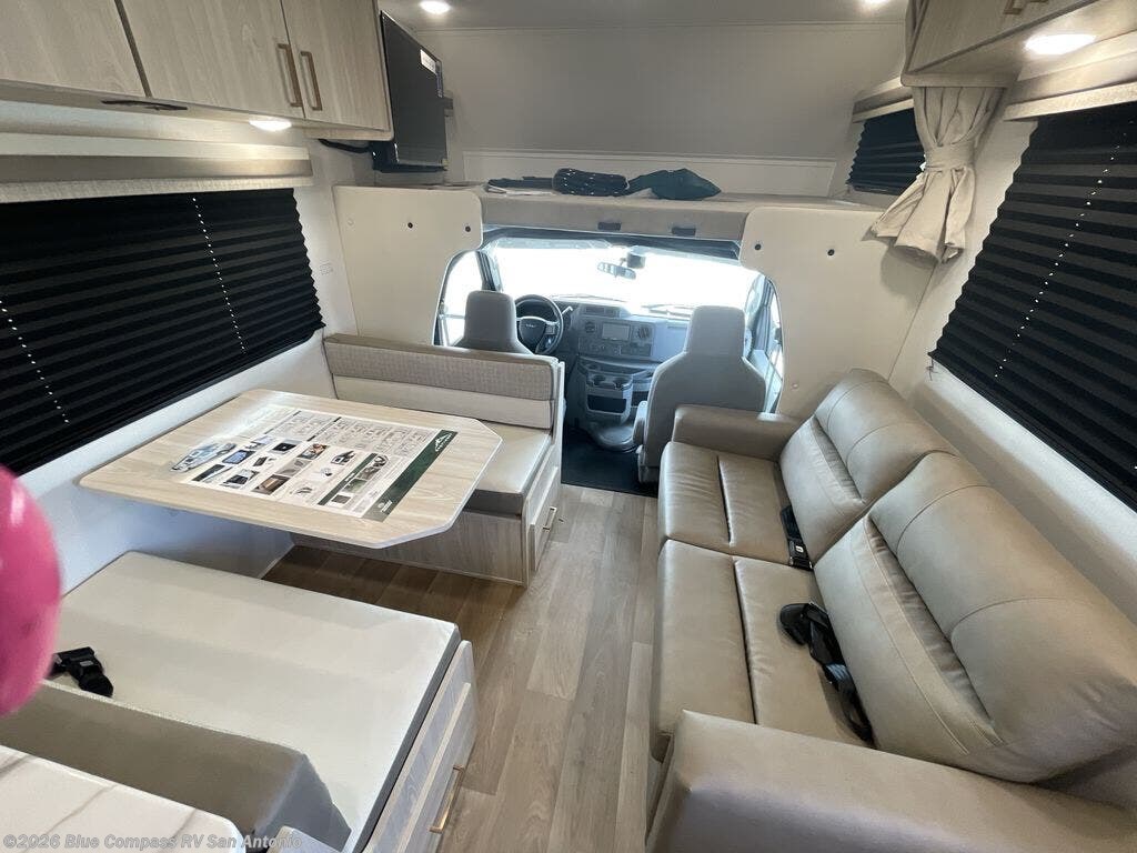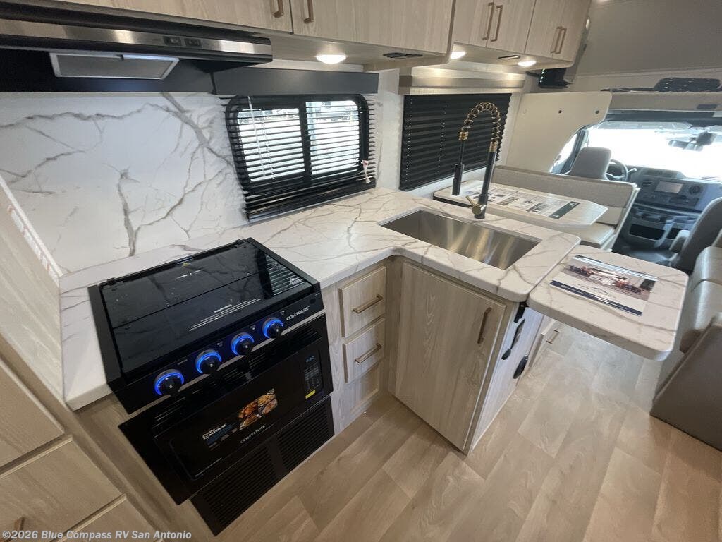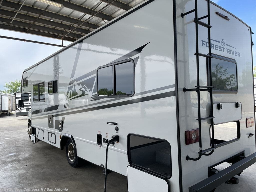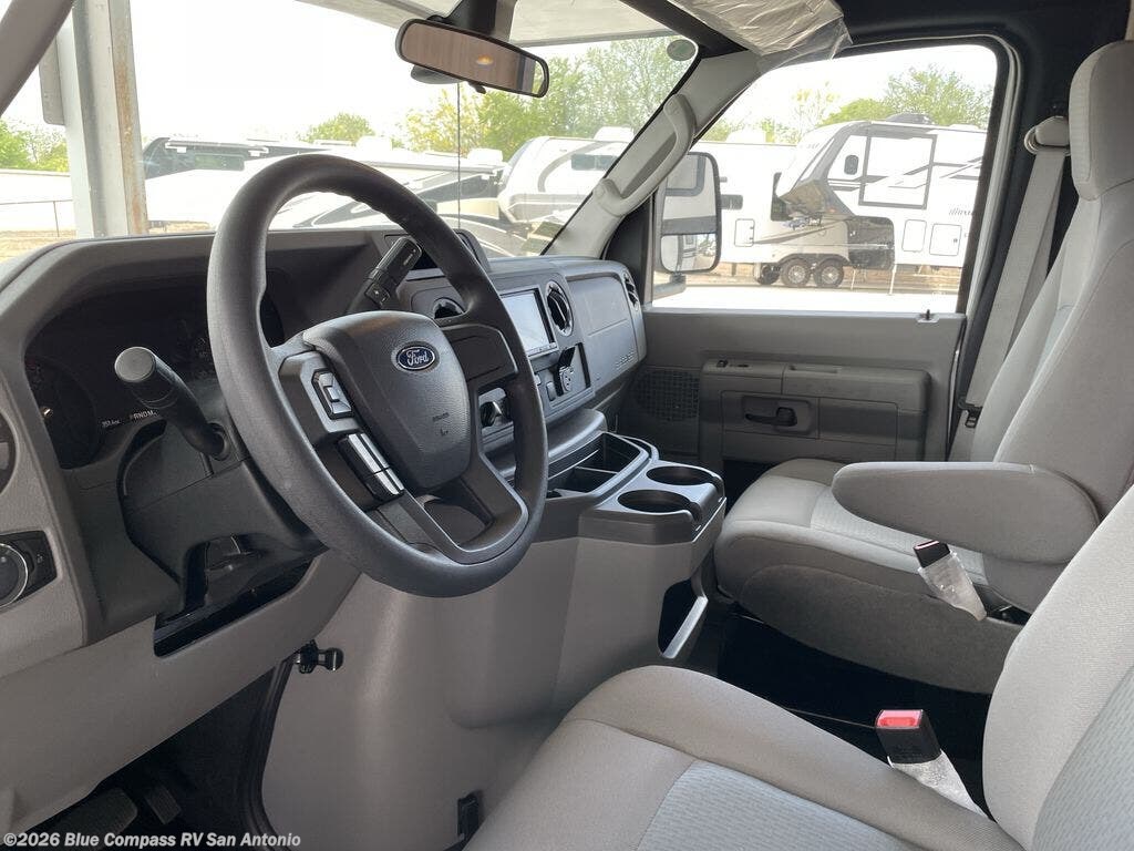 With any Entrada Class C gas motorhome from EAST TO WEST, the construction consists of a one-piece painted fiberglass front cap, a TPO roof membrane, and 2" Azdel composite sidewalls for added durability. There are rotocast exterior storage compartments with slam latch doors, along with an exterior LP Quick Connect, and a power awning with an LED light strip. You will also find rear and sideview cameras to help make maneuvering and parking your RV easier than ever. Inside, you'll feel right at home with soft close hardwood cabinet doors and drawers, a high-altitude tankless water heater, plus a 12V smart TV and USB ports to keep your electronics charged up!