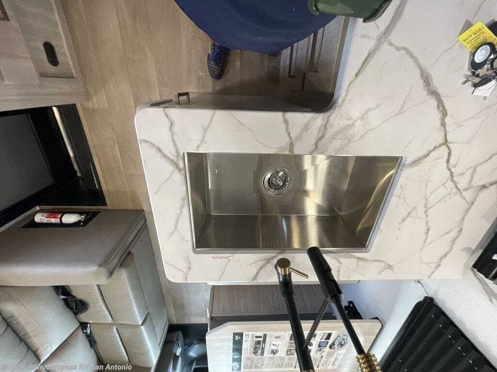 This coach is perfect for traveling with a friend or honey since there are two twin beds that can convert to a king-size bed if you choose! There is a 62" sofa and 42" x 68" booth dinette in the main living area that can double as seating and sleeping space, plus there is a bunk over cab for the little ones. Once you are fully rested, head to the kitchen to prepare a delicious breakfast feast with the convection microwave and cooktop. Use the double sink to clean up, and the 10.7-cubic foot refrigerator to keep your perishables fresh. You can even add some extra prep space to this area by using the countertop extension.