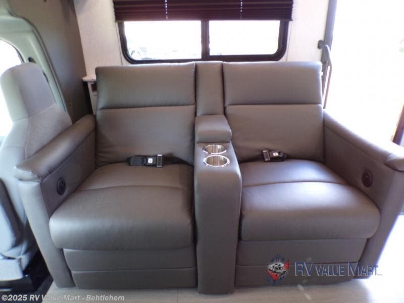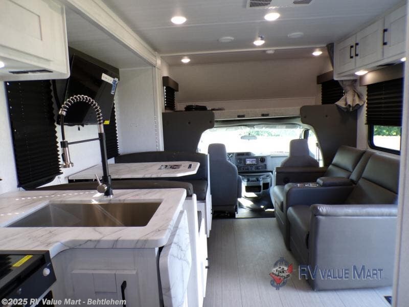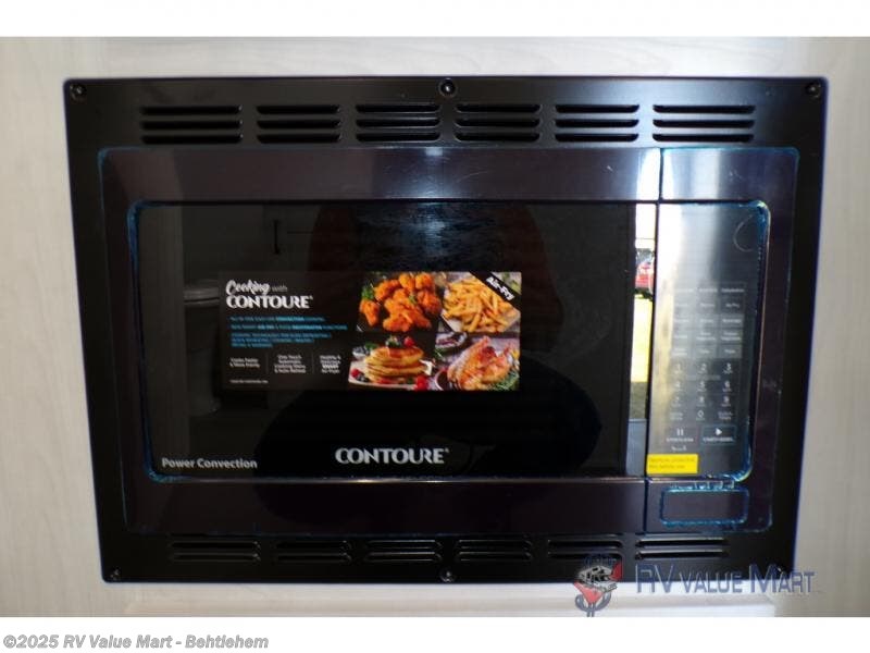 Comfort comes easy in this coach with theater seats and a slide out for more space! You'll find the booth dinette within the slide, along with the cooktop and convection microwave with air fryer technology. A double bowl sink will make clean up easier than ever, and there is a 12V dual swing refrigerator to keep your cold items fresh. The full bath with a 24" x 36" shower will let you clean up each day, and the rear private bedroom with a king bed is sure to provide a great night's rest! And any guests you may have can sleep on the 60" x 80" bunk-over cab or on the dinette once converted to sleeping space!