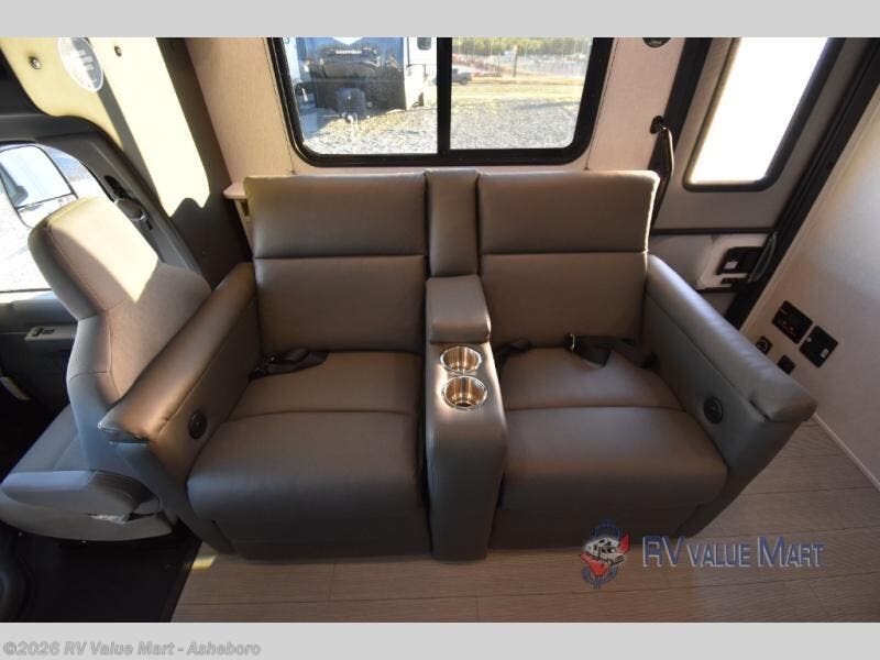 Comfort comes easy in this coach with theater seats and a slide out for more space! You'll find the booth dinette within the slide, along with the cooktop and convection microwave with air fryer technology. A double bowl sink will make clean up easier than ever, and there is a 12V dual swing refrigerator to keep your cold items fresh. The full bath with a 24" x 36" shower will let you clean up each day, and the rear private bedroom with a king bed is sure to provide a great night's rest! And any guests you may have can sleep on the 60" x 80" bunk-over cab or on the dinette once converted to sleeping space!