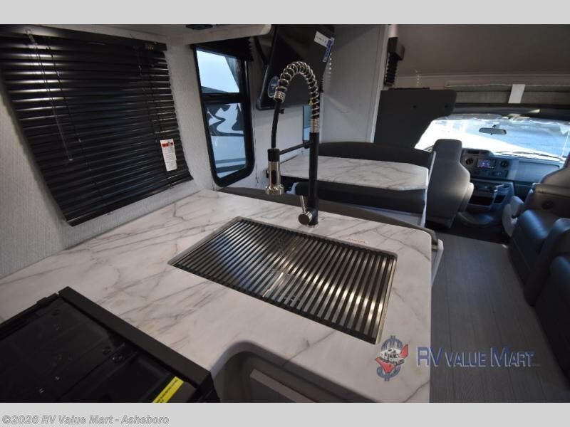With any Entrada Class C gas motorhome from EAST TO WEST, the construction consists of a one-piece painted fiberglass front cap, a TPO roof membrane, and 2" Azdel composite sidewalls for added durability. There are rotocast exterior storage compartments with slam latch doors, along with an exterior LP Quick Connect, and a power awning with an LED light strip. You will also find rear and sideview cameras to help make maneuvering and parking your RV easier than ever. Inside, you'll feel right at home with soft close hardwood cabinet doors and drawers, a high-altitude tankless water heater, plus a 12V smart TV and USB ports to keep your electronics charged up!