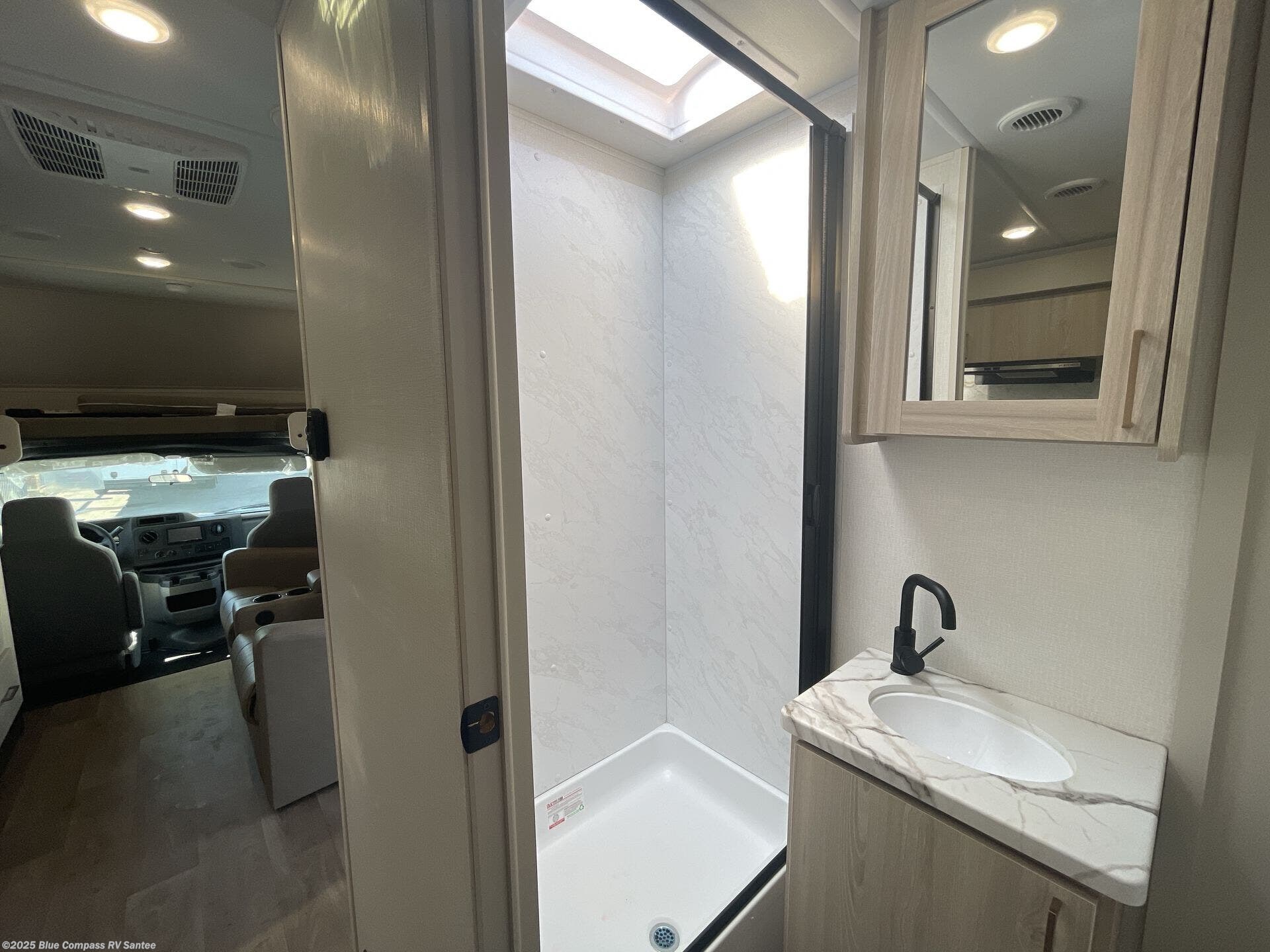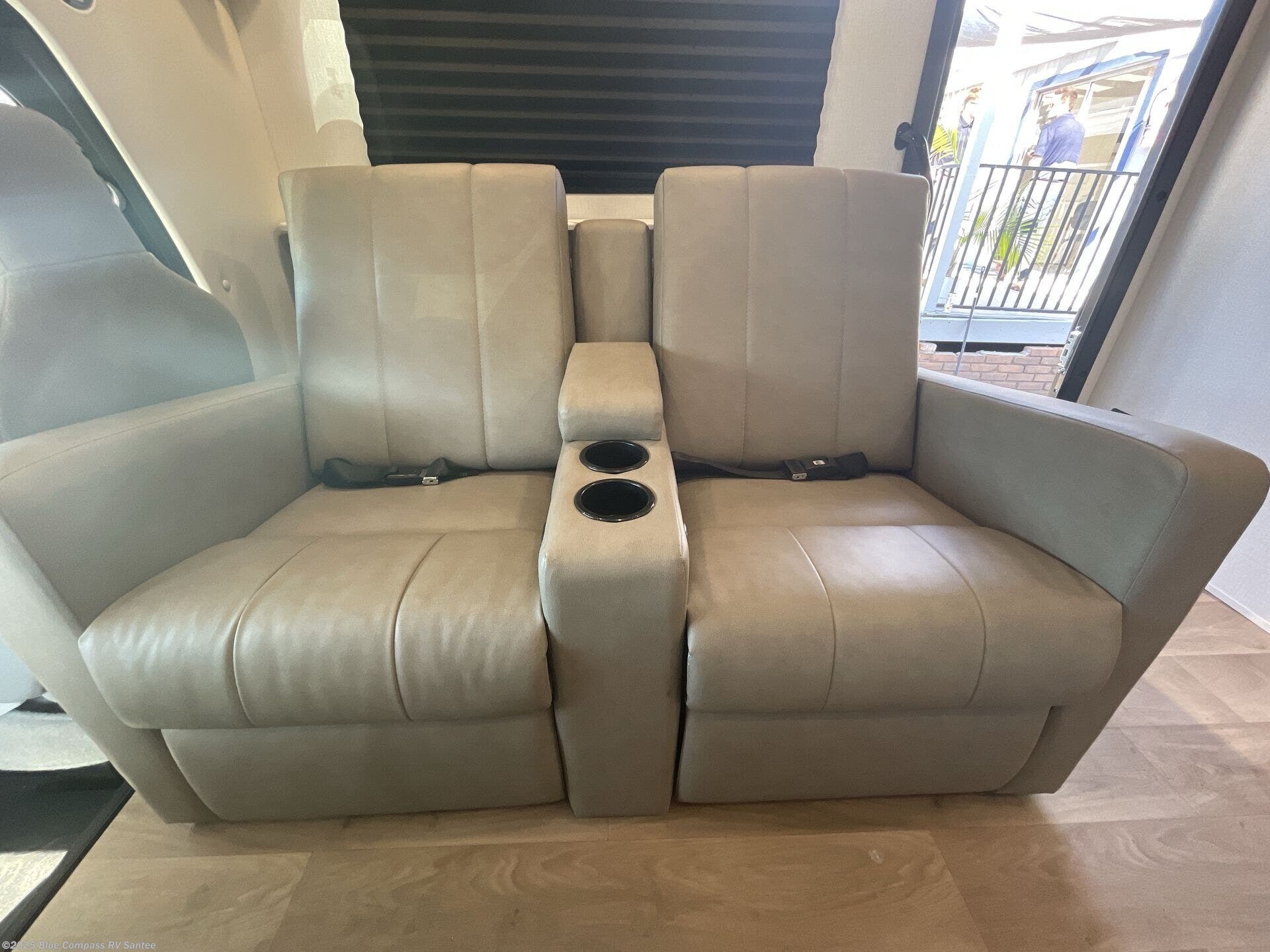 Comfort comes easy in this coach with theater seats and a slide out for more space! You'll find the booth dinette within the slide, along with the cooktop and convection microwave with air fryer technology. A double bowl sink will make clean up easier than ever, and there is a 12V dual swing refrigerator to keep your cold items fresh. The full bath with a 24" x 36" shower will let you clean up each day, and the rear private bedroom with a king bed is sure to provide a great night's rest! And any guests you may have can sleep on the 60" x 80" bunk-over cab or on the dinette once converted to sleeping space!