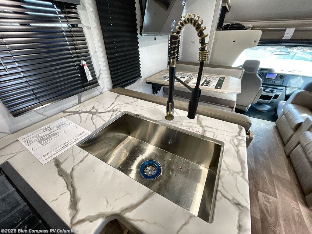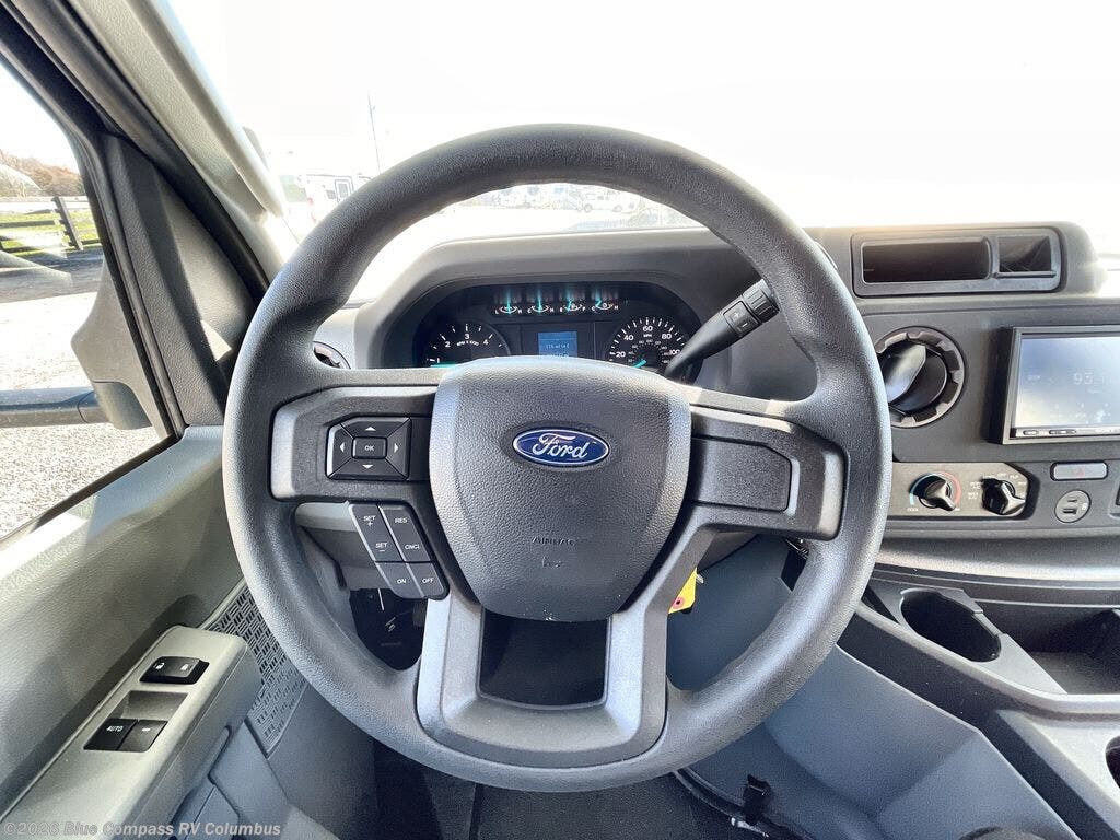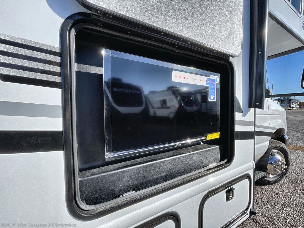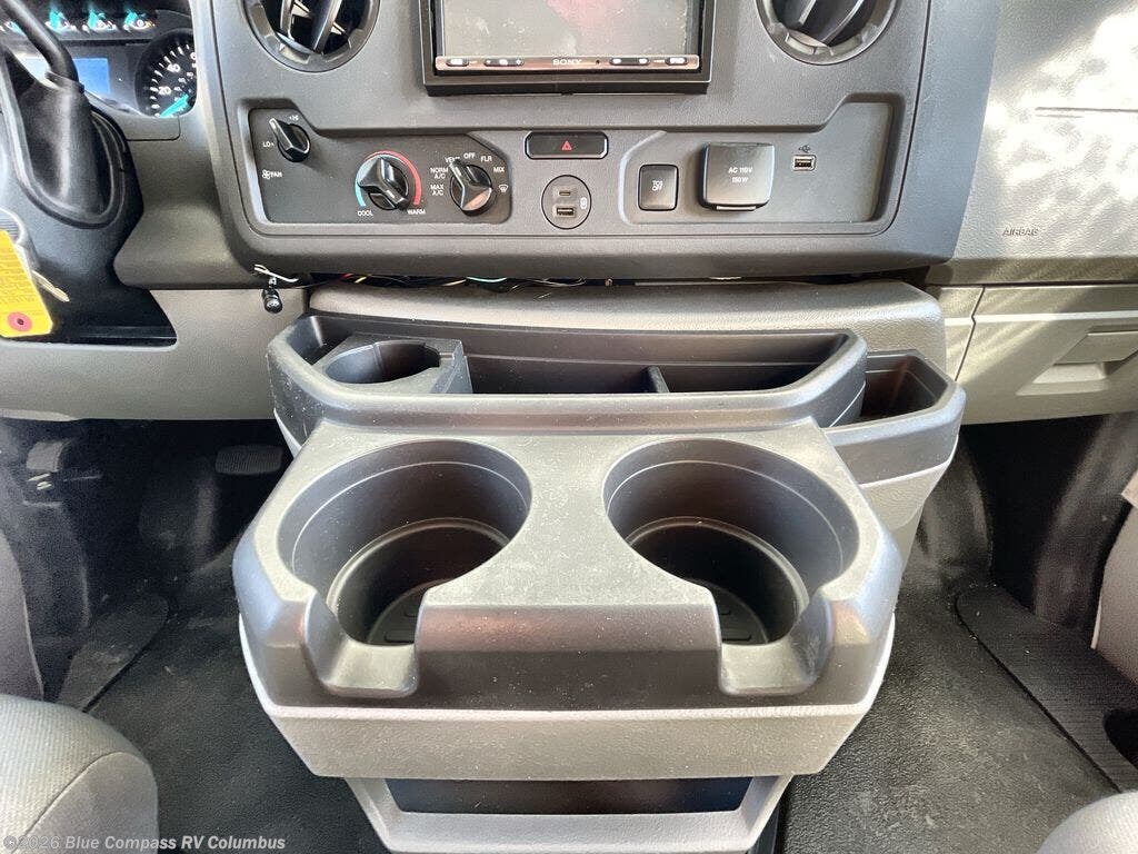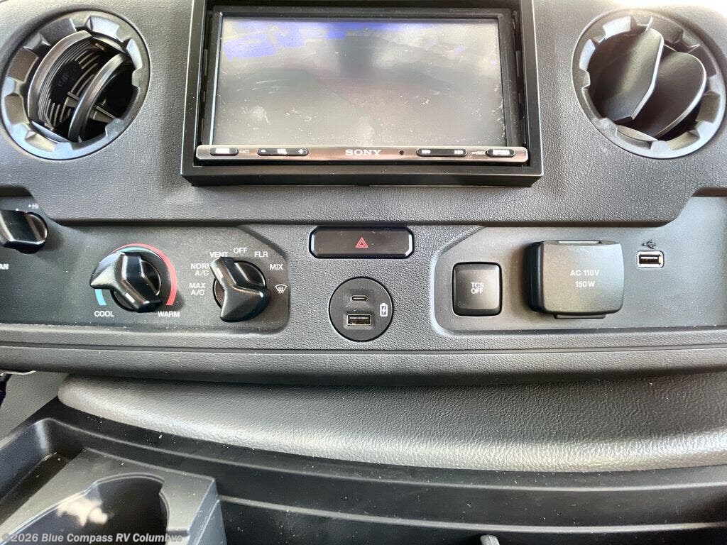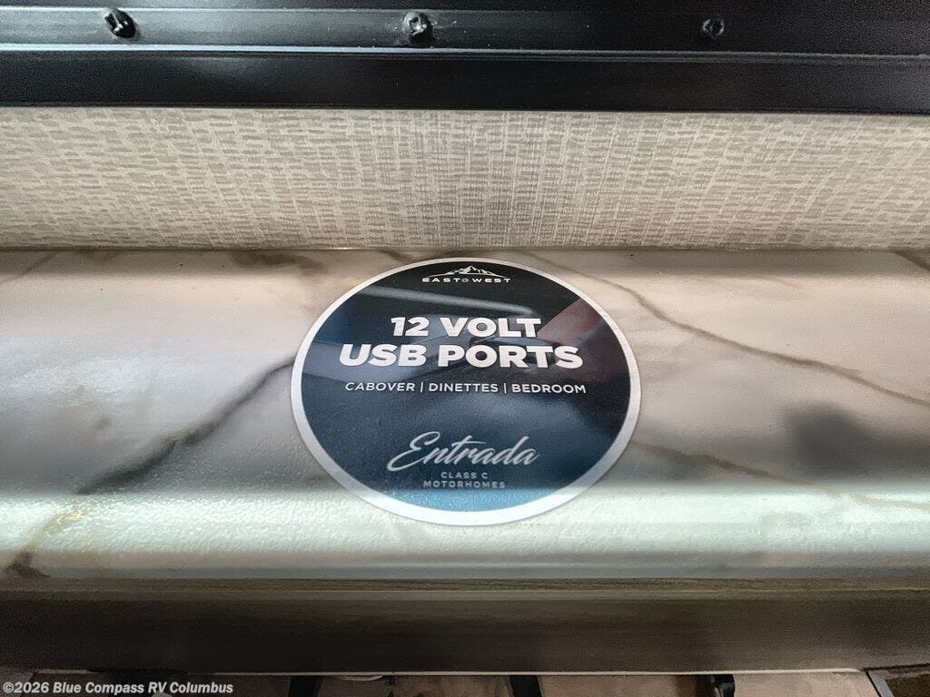 With any Entrada Class C gas motorhome from EAST TO WEST, the construction consists of a one-piece painted fiberglass front cap, a TPO roof membrane, and 2" Azdel composite sidewalls for added durability. There are rotocast exterior storage compartments with slam latch doors, along with an exterior LP Quick Connect, and a power awning with an LED light strip. You will also find rear and sideview cameras to help make maneuvering and parking your RV easier than ever. Inside, you'll feel right at home with soft close hardwood cabinet doors and drawers, a high-altitude tankless water heater, plus a 12V smart TV and USB ports to keep your electronics charged up!
