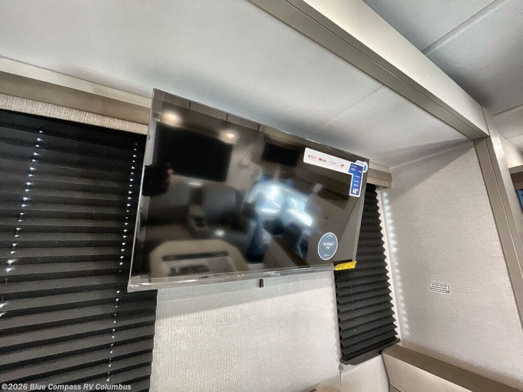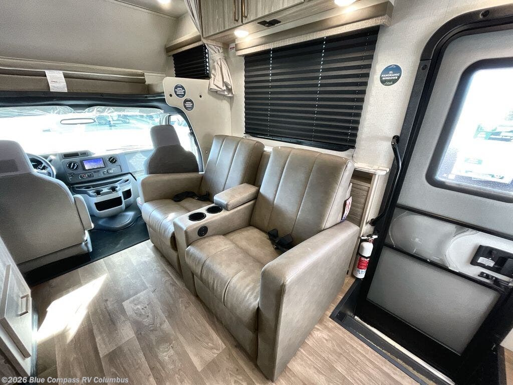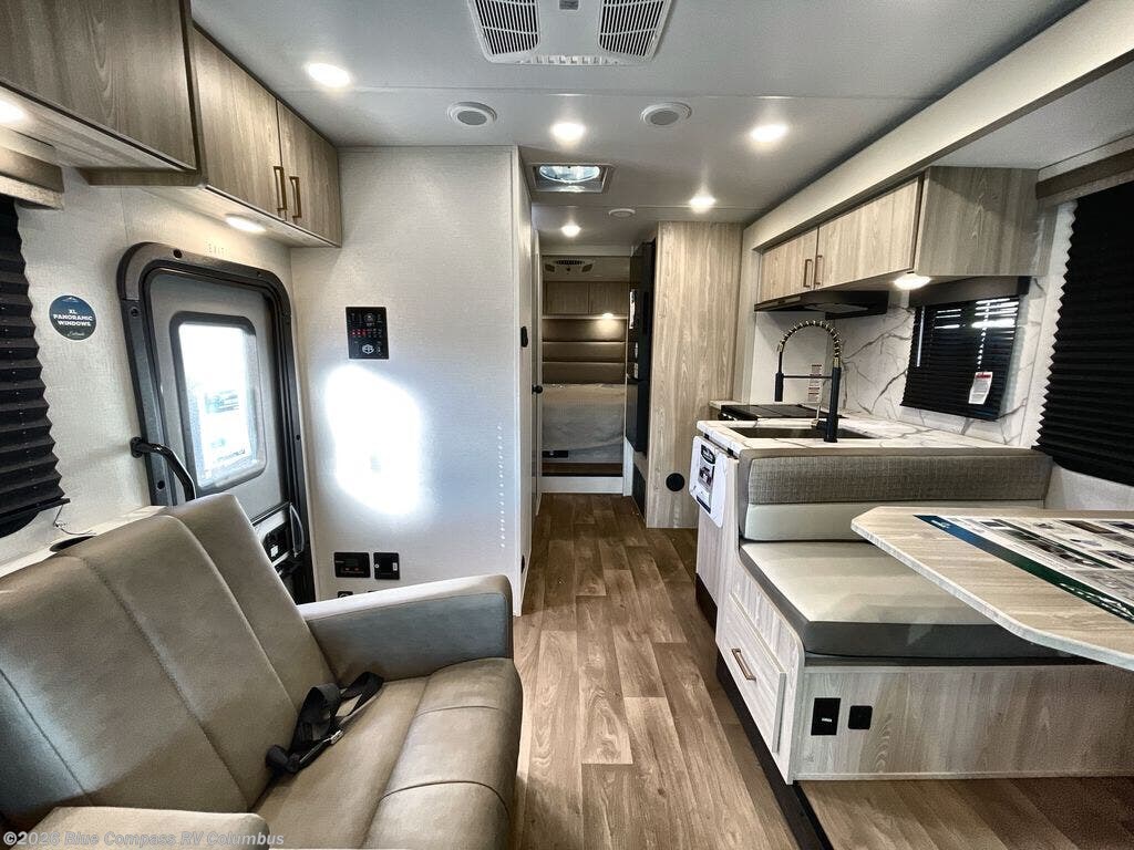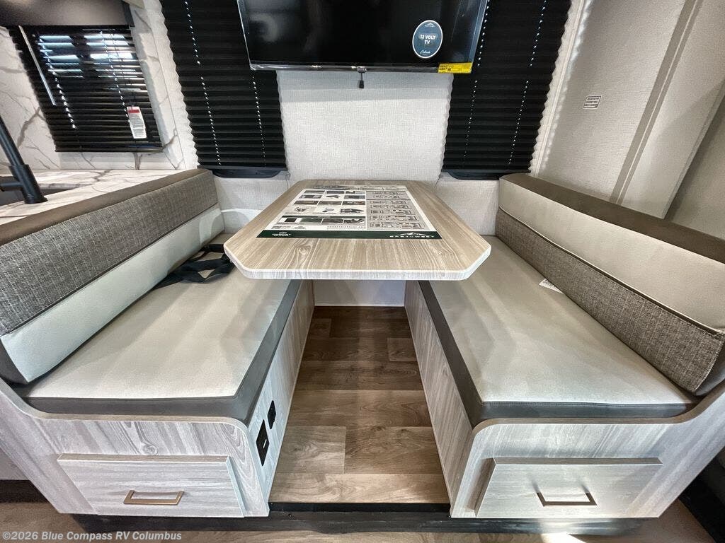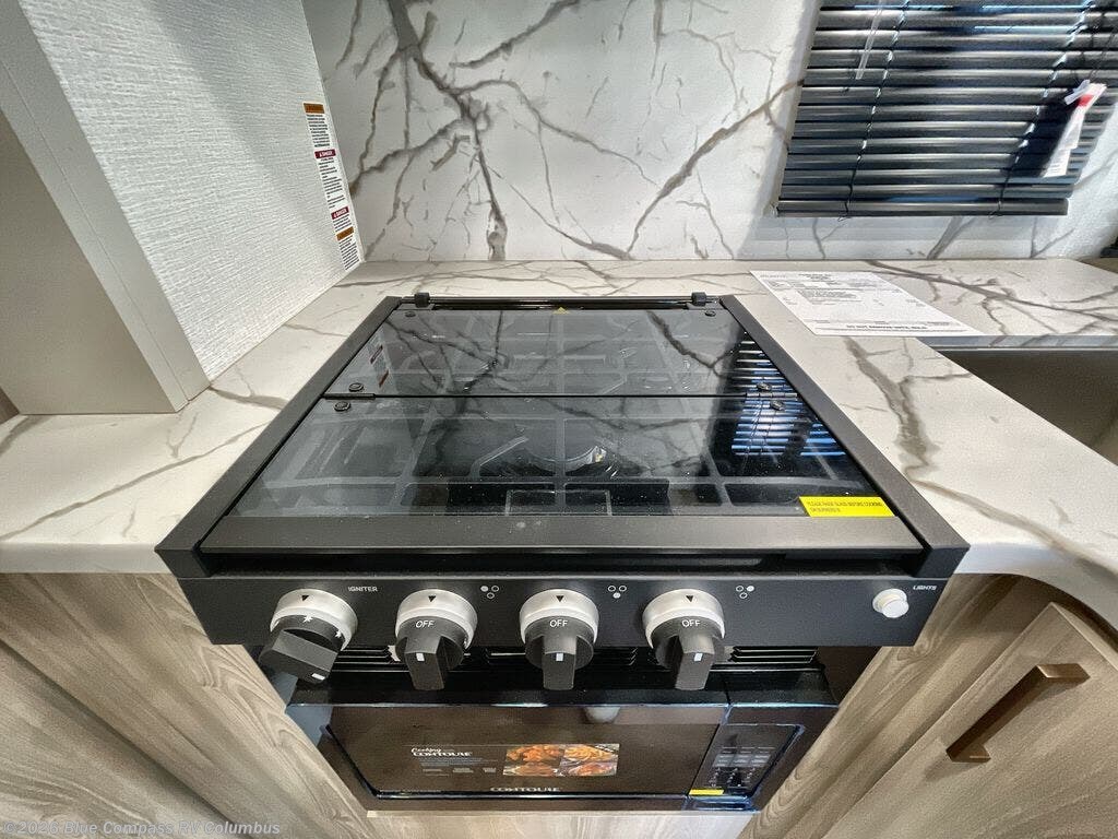 Comfort comes easy in this coach with theater seats and a slide out for more space! You'll find the booth dinette within the slide, along with the cooktop and convection microwave with air fryer technology. A double bowl sink will make clean up easier than ever, and there is a 12V dual swing refrigerator to keep your cold items fresh. The full bath with a 24" x 36" shower will let you clean up each day, and the rear private bedroom with a king bed is sure to provide a great night's rest! And any guests you may have can sleep on the 60" x 80" bunk-over cab or on the dinette once converted to sleeping space!